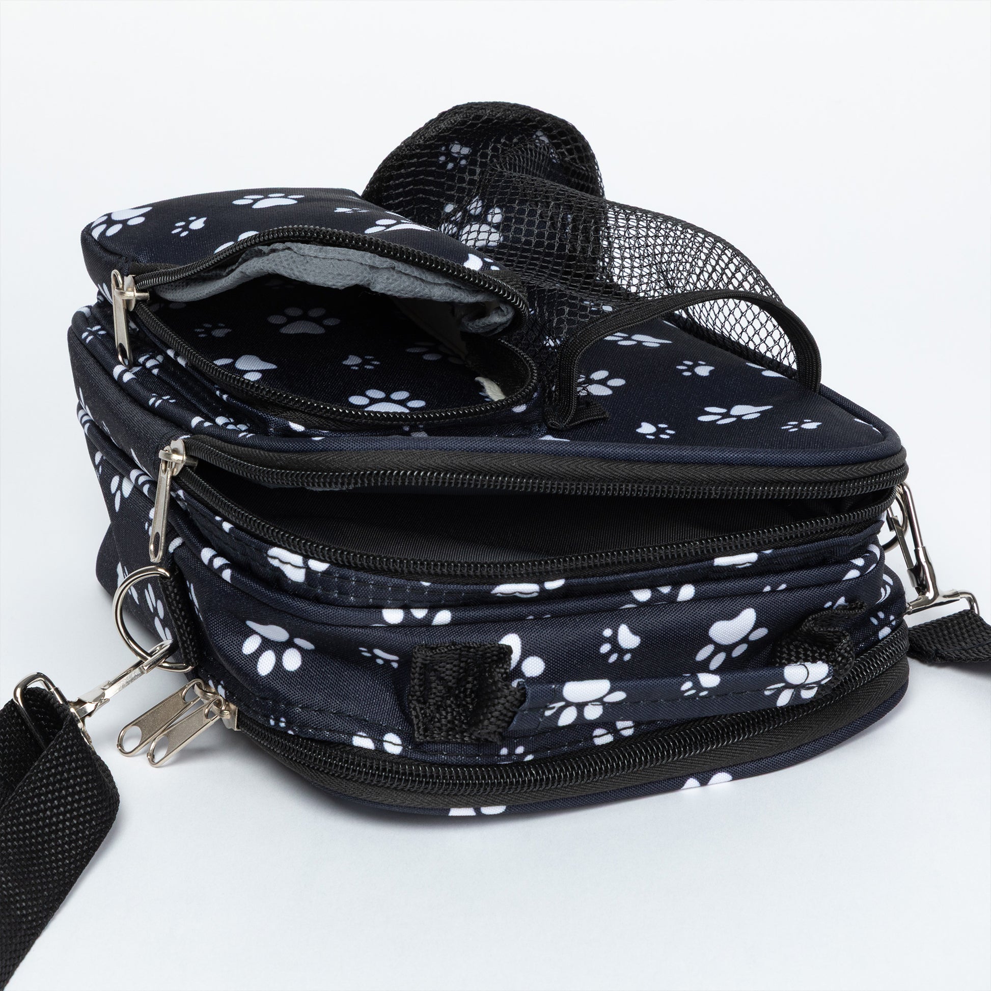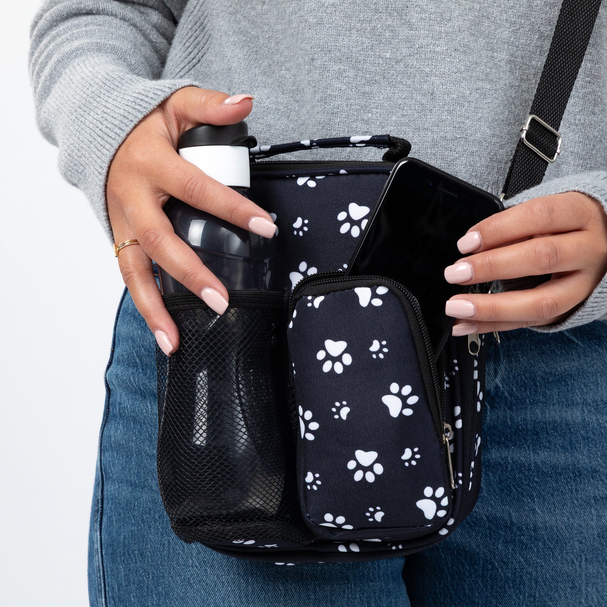 Keep your essentials close and your style playful with this paw print or dog themed daypack! Made from durable polyester, this compact yet roomy bag features four zippered pockets and a mesh bottle pocket to keep everything organized on the go. The adjustable strap offers a comfortable fit whether you’re out for a walk, running errands, or exploring with your furry friend.