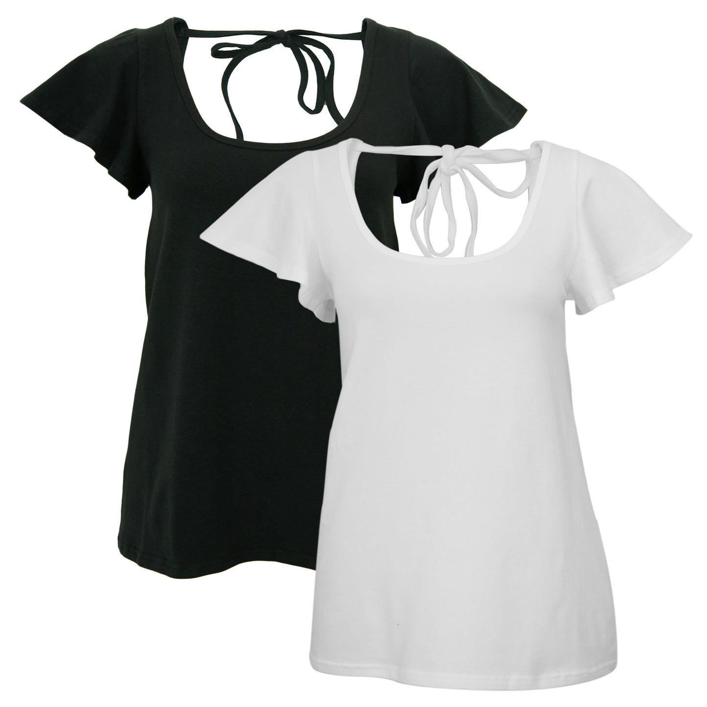 Sleeves that flutter, a neckline that scoops, color that captures the eye...and it all ties together at the top! This pretty tee in organic cotton lends an element of elegance to the everyday and transforms the ordinary t-shirt into a breezy work of art.
