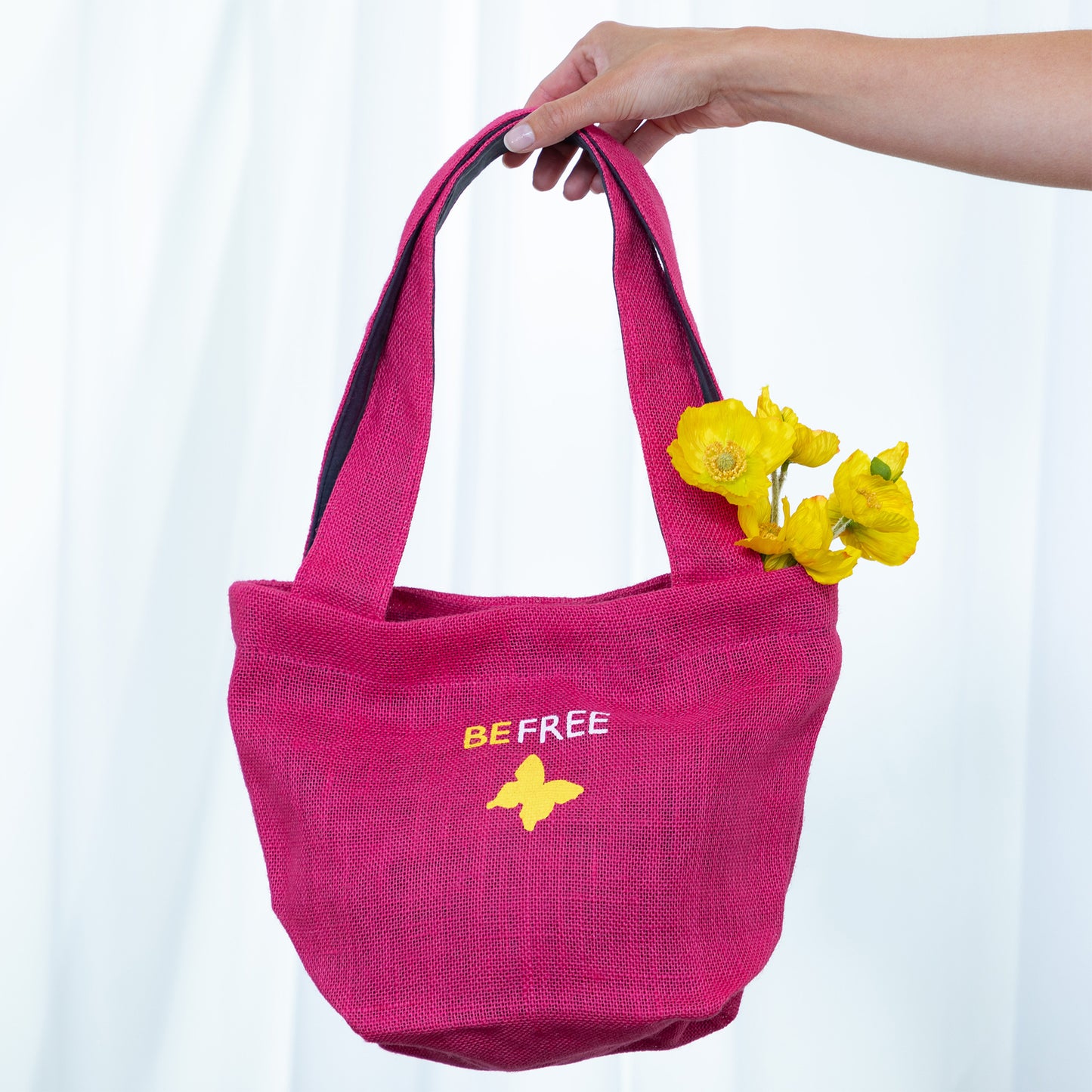 Be Free as you carry your tote to the grocery store, the shopping mall, the library, and beyond! Each tote is made of eco-friendly renewable jute by women who have been rescued from human trafficking in India. The women have escaped their brothels to find acceptance, hope, and a new start at Freeset, a fair trade anti-trafficking organization in Kolkata. By purchasing this bag, you become a vital part in their journey toward freedom so they can truly Be Free!