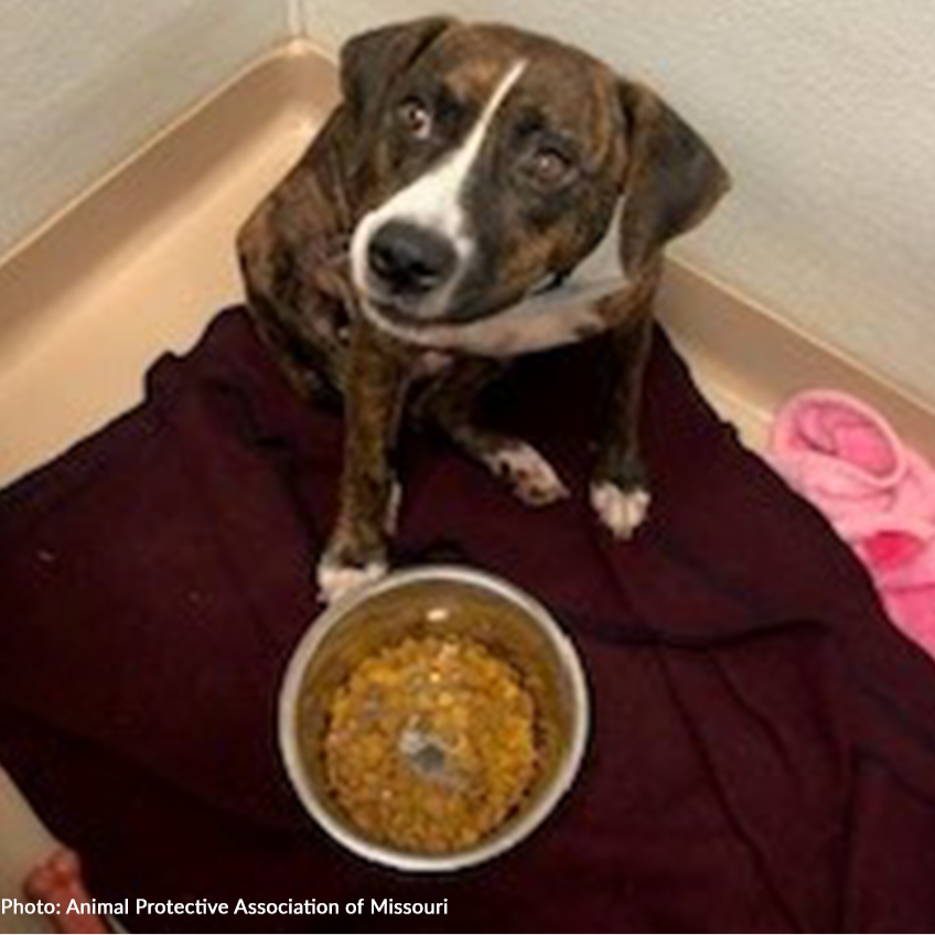 She arrived at Animal Protective Association of Missouri in desperate need of food and medical care. She was suffering from a serious skin infection, malnutrition and was heartworm positive. Thanks to your donations, she received nutritious meals, a warm blanket to rest on, and all the care she needed to make a full recovery.