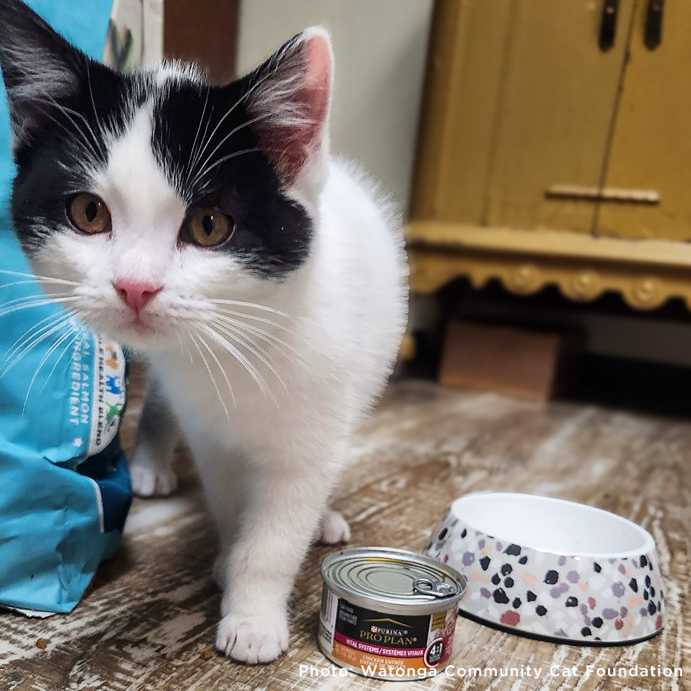This orphaned kitten was living in a truck for a week before he was rescued. He was taken in by a foster family who fed him nutritious food, thanks to your donations. He continues to grow and thrive.