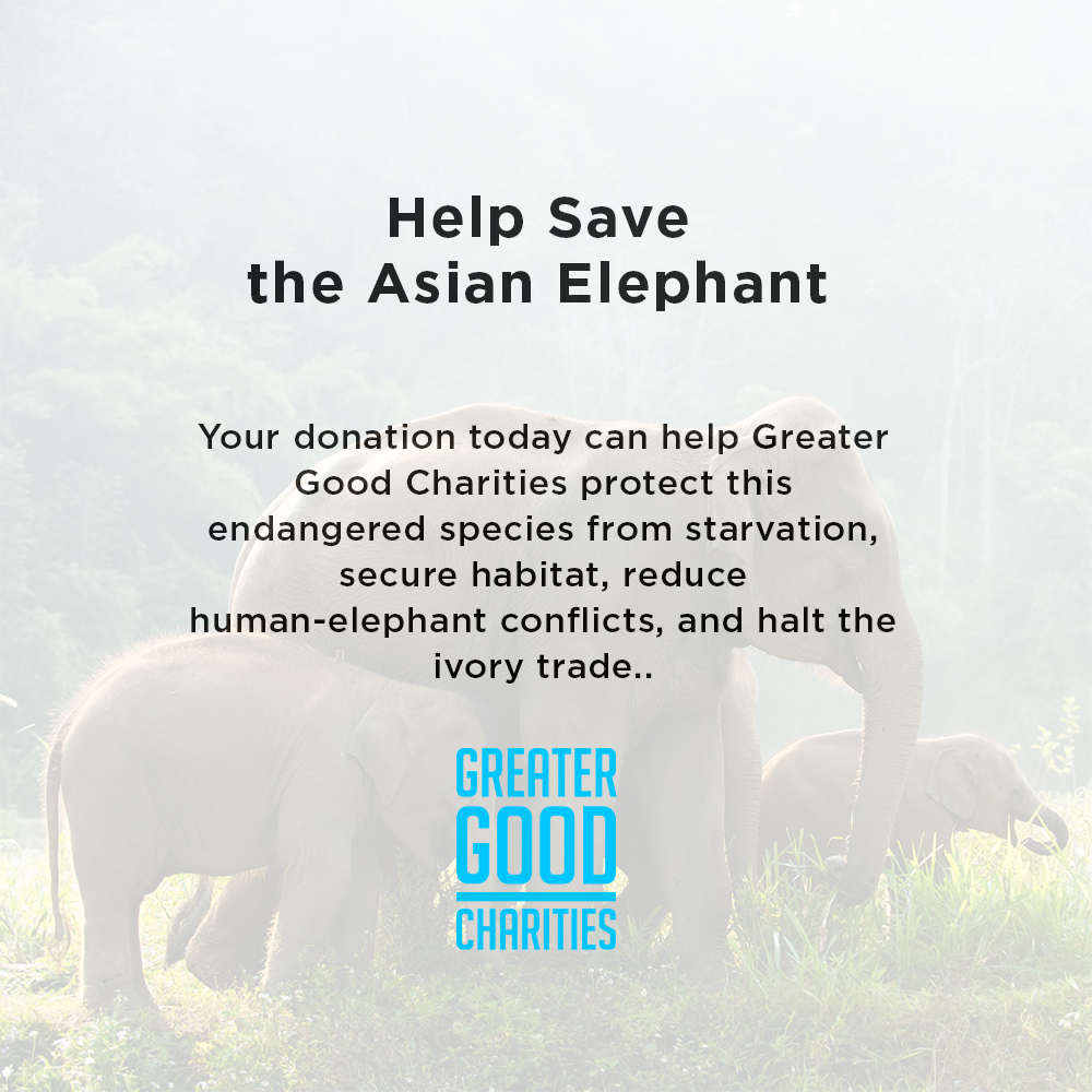 We must do what we can to save the Asian Elephant. Greater Good Charities is committed to working with the best partners to secure habitat for elephants, reduce human-elephant conflicts, and halt the ivory trade.