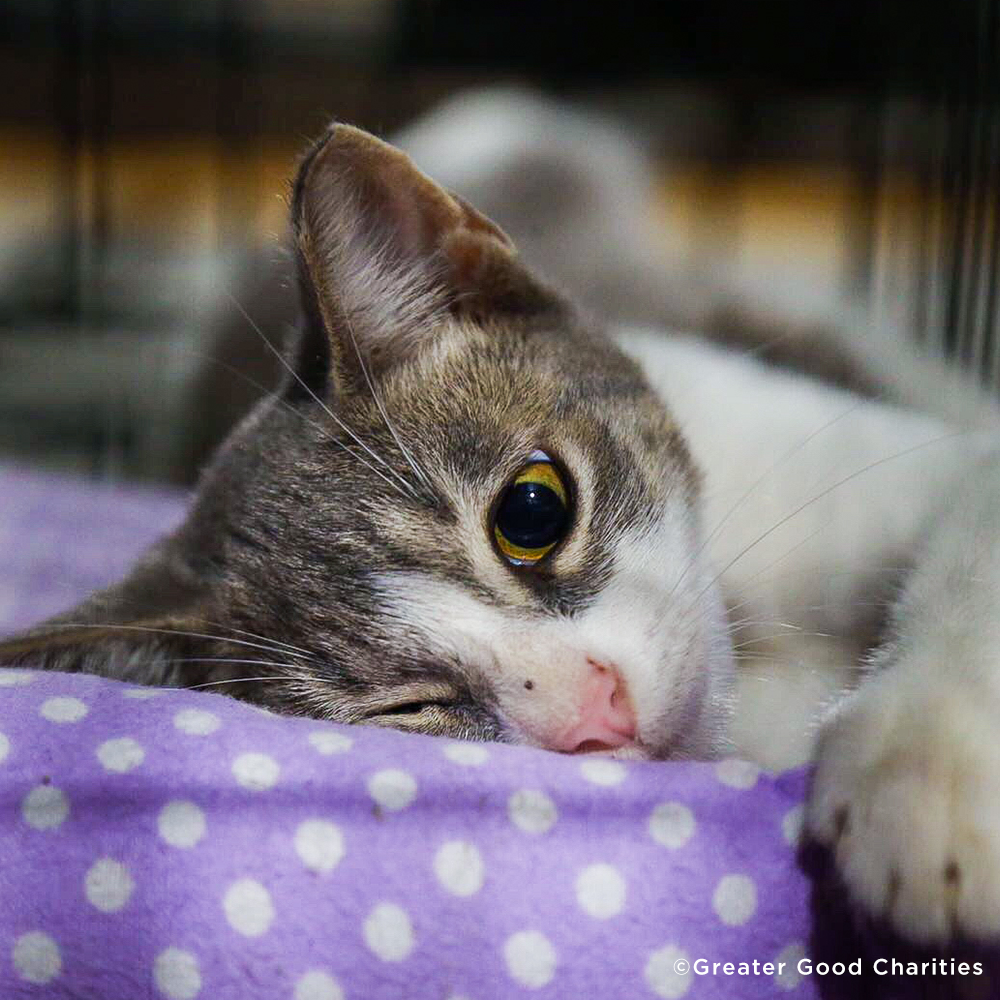 Sponsor a shelter cat today! Join GreaterGood's mission to help cats in shelters across the US with cat care packages.