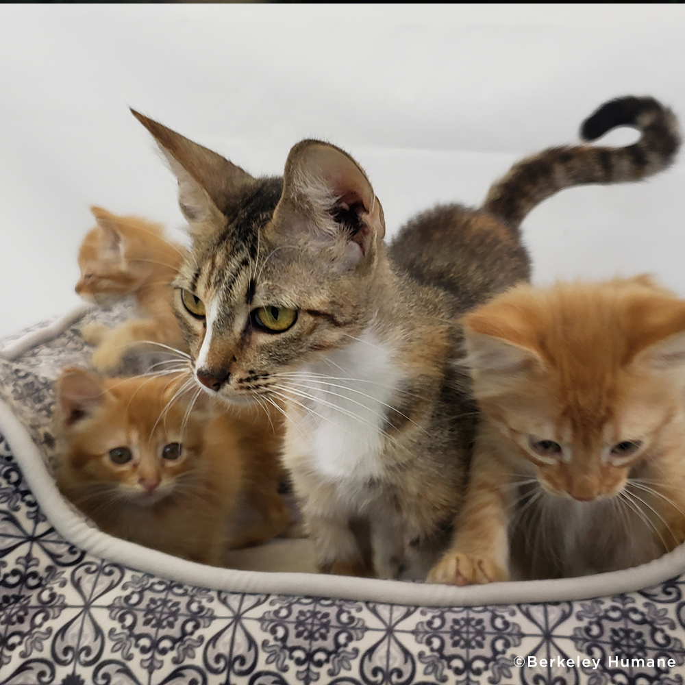Bonded littermates Carl and Carley were brought to the Cat House on the Kings in Fresno County, California, after their mother abandoned them. Fortunately, another cat at the rescue recently had kittens and welcomed them as her own. With your help, kittens like Carl and Carley are able to get the necessities, like medical care, while they wait for forever homes!