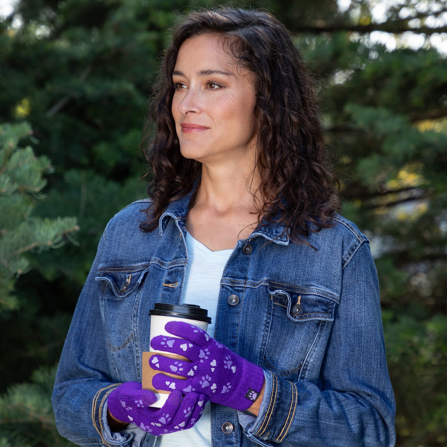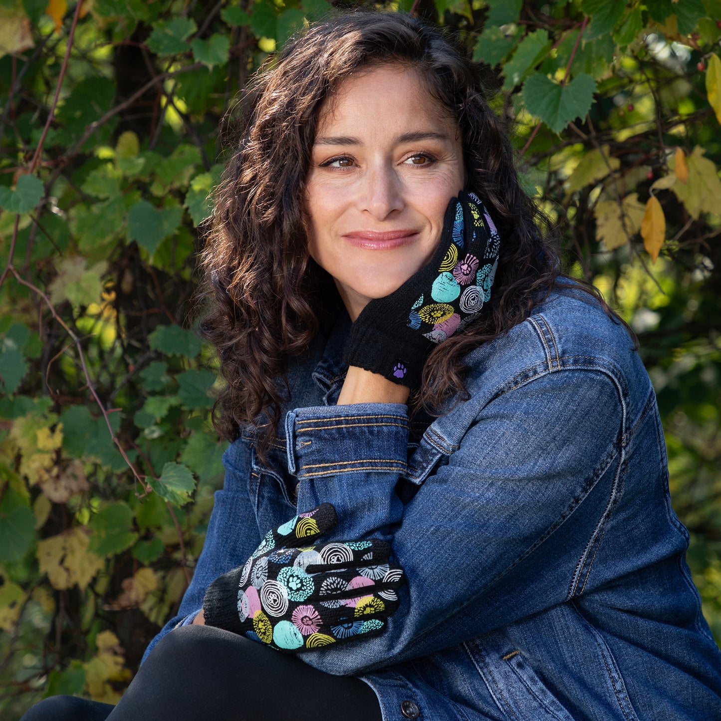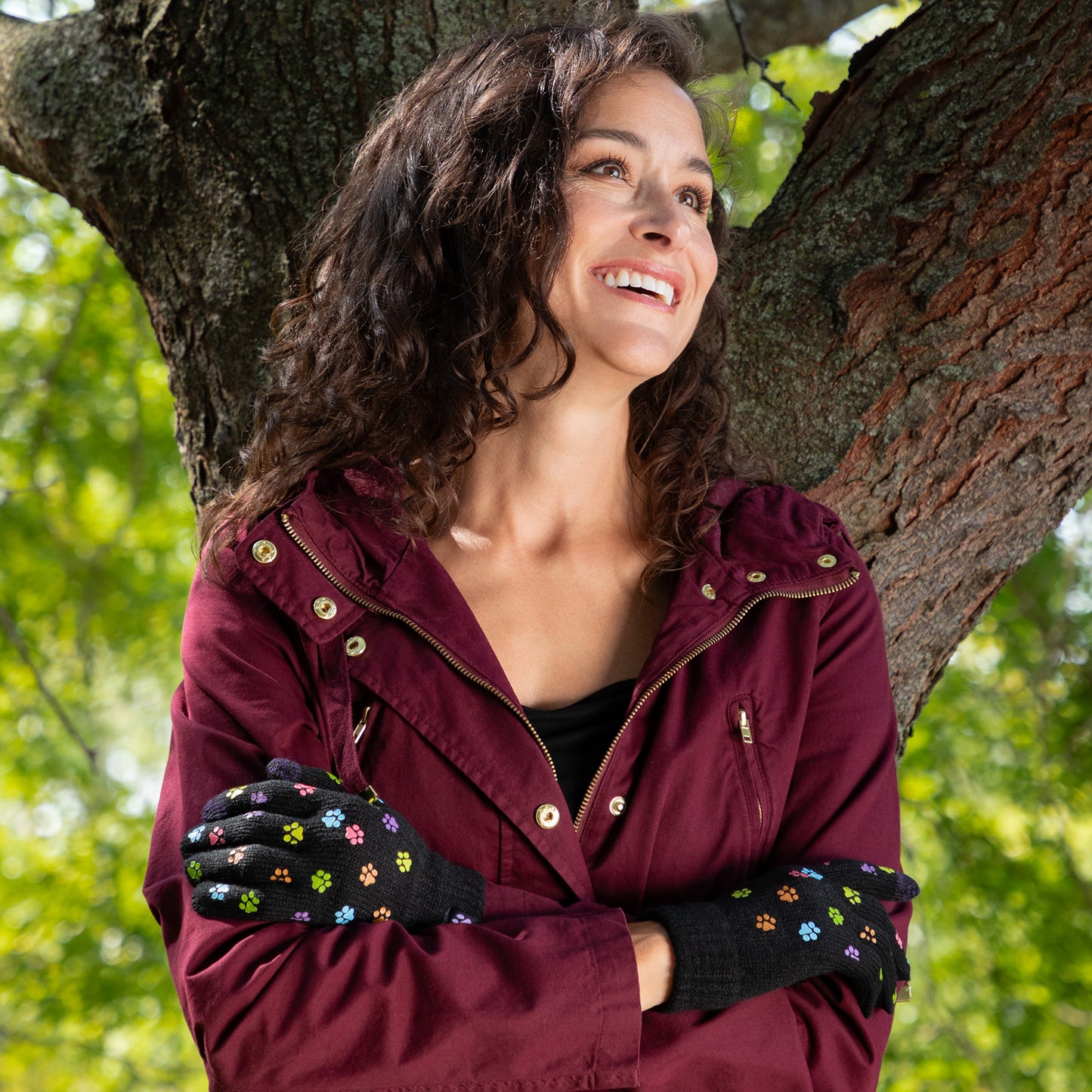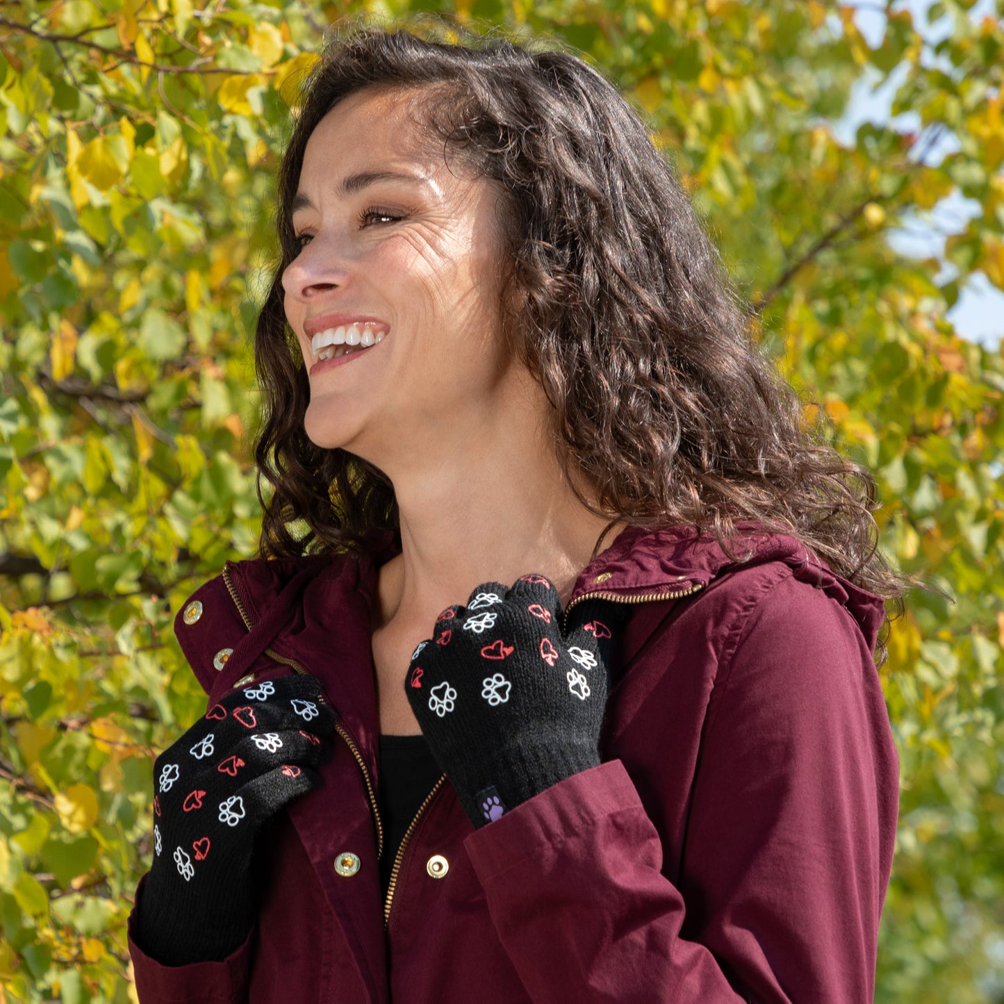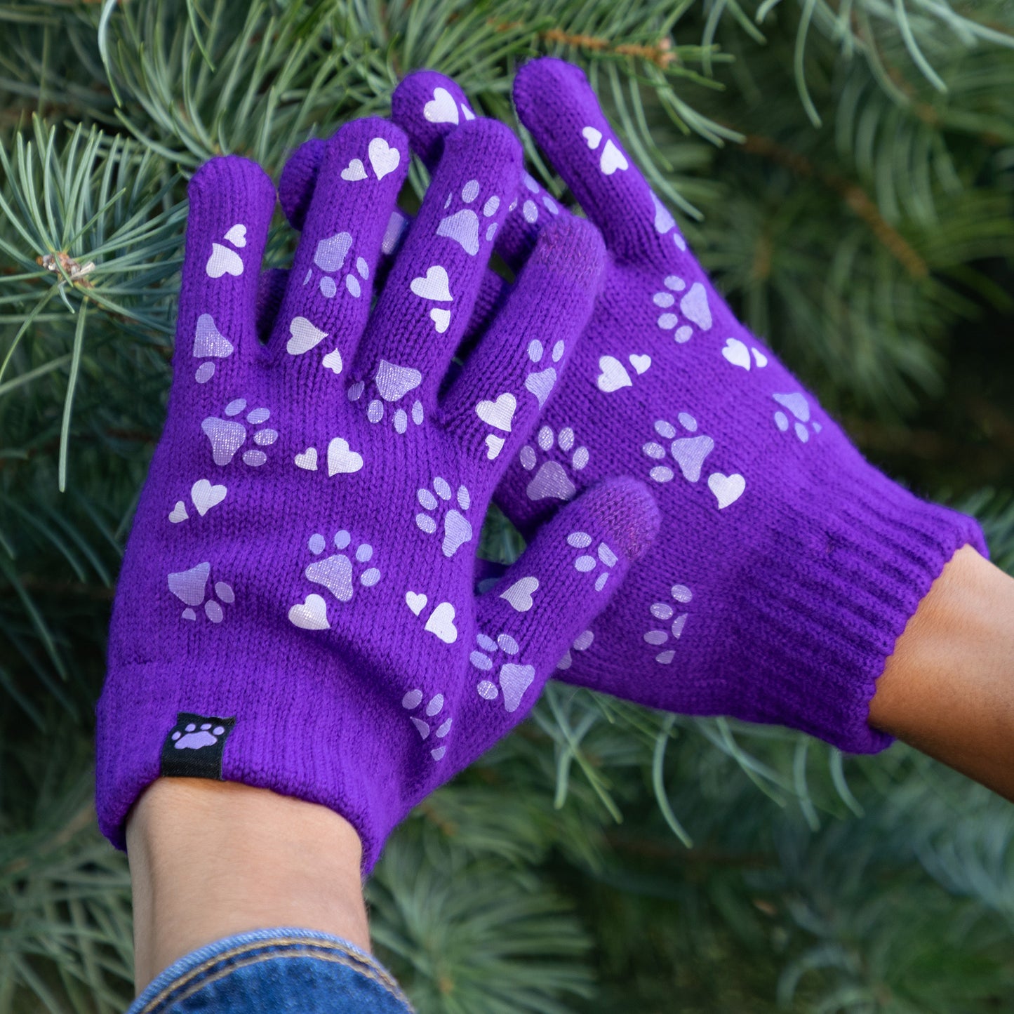 A sea of tiny colorful paw prints patterns the back of each glove, while the soft, stretchy fabric keeps the chill out in this adorably versatile pair. Featuring conductive fiber woven into the thumb and index fingertips to work with all your touchscreen gadgets, this paw printed pair boasts your support of animal causes!