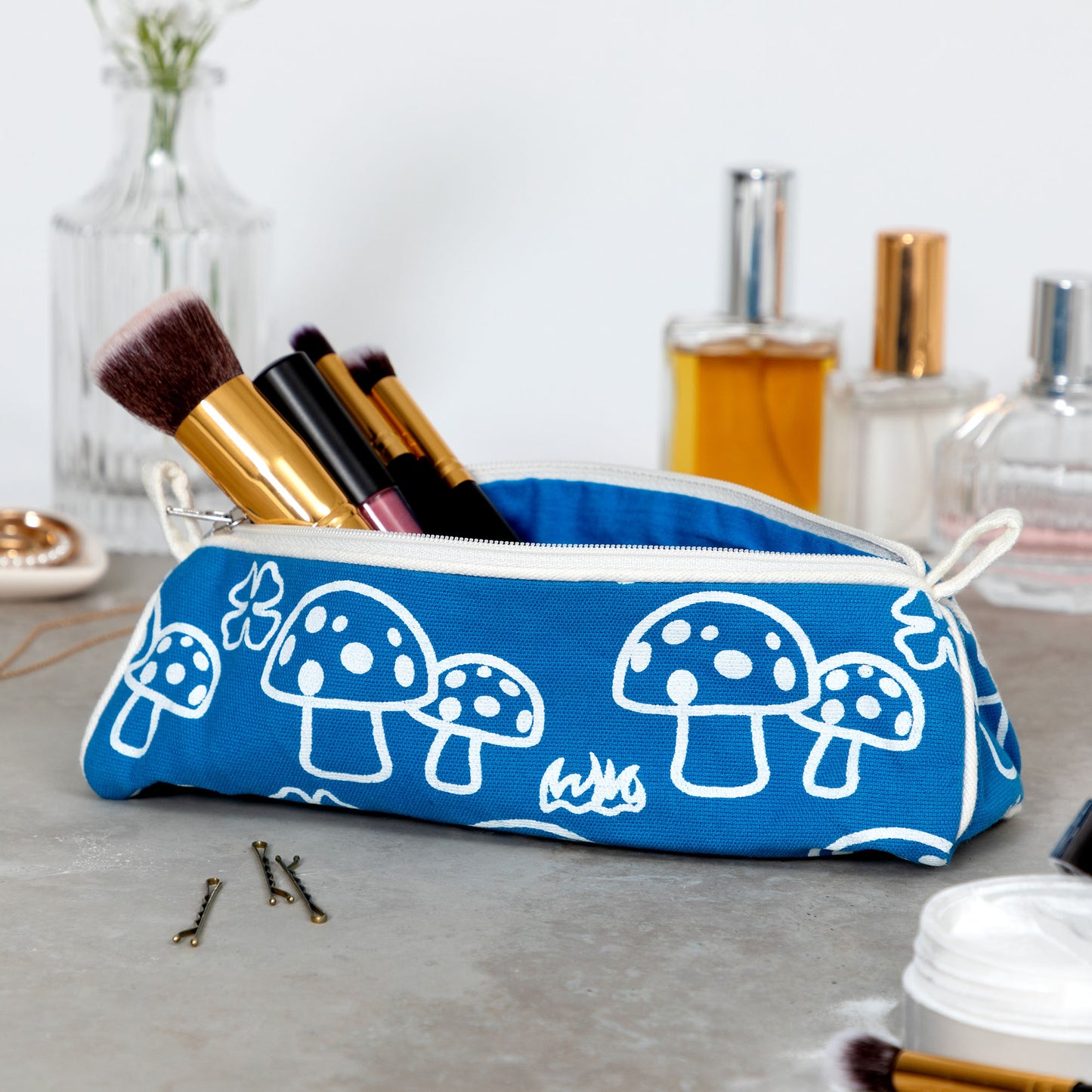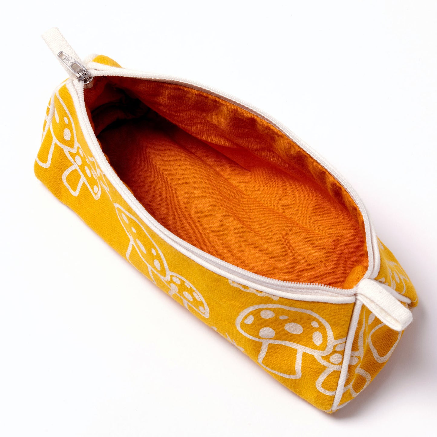 A magical little case topped with a retro mushroom print is an ideal fit for everything from makeup to art supplies. Made by artisans of ACP in Nepal with a blend of traditional craft and modern design.