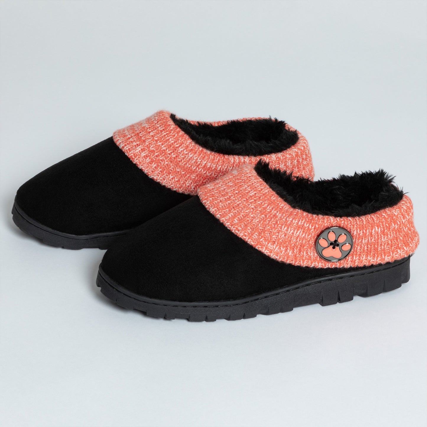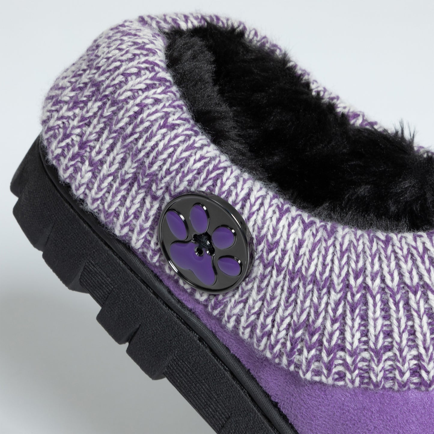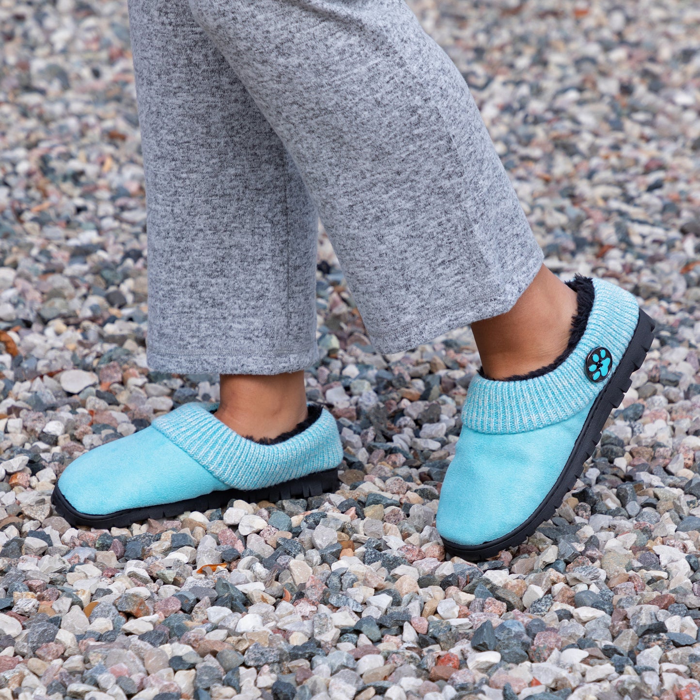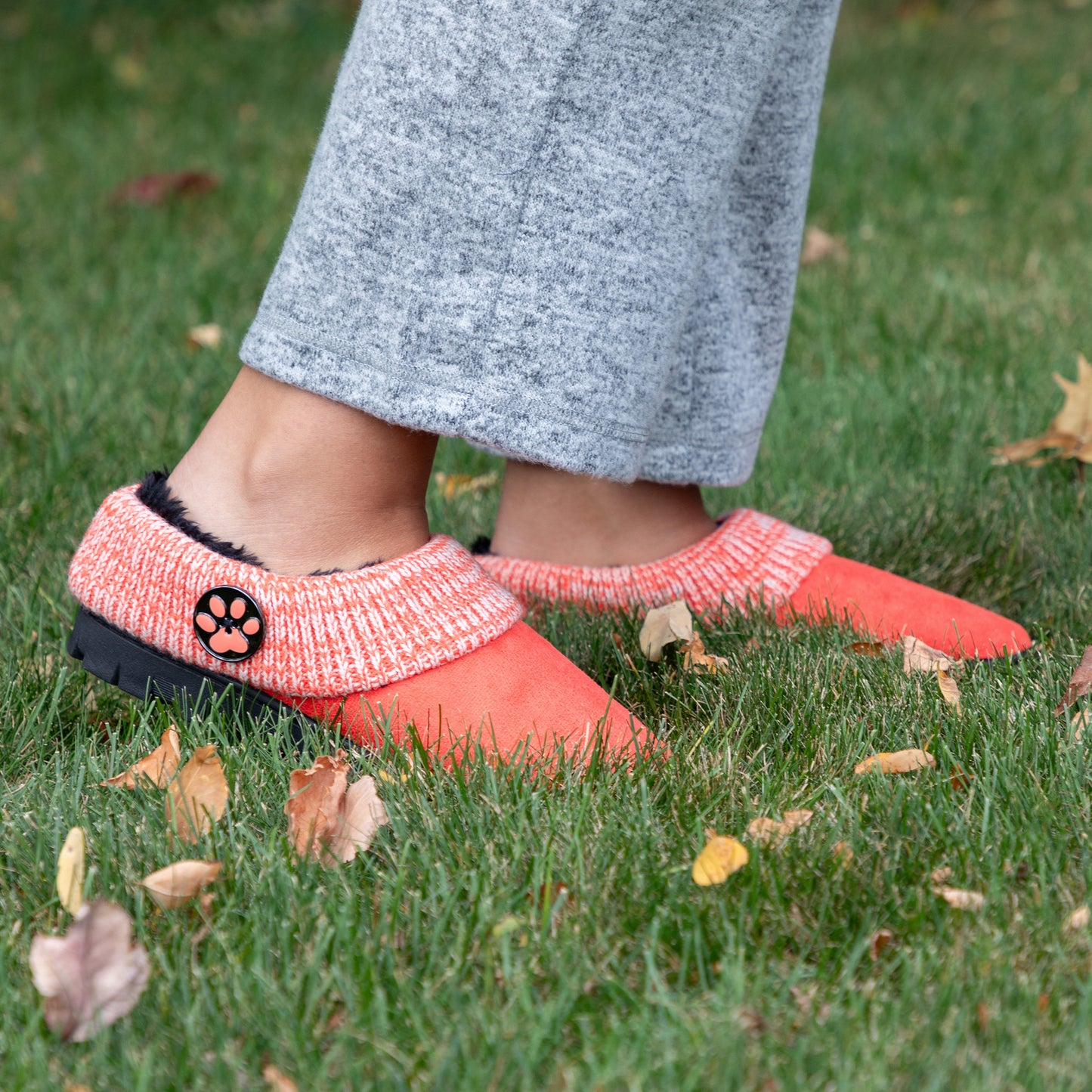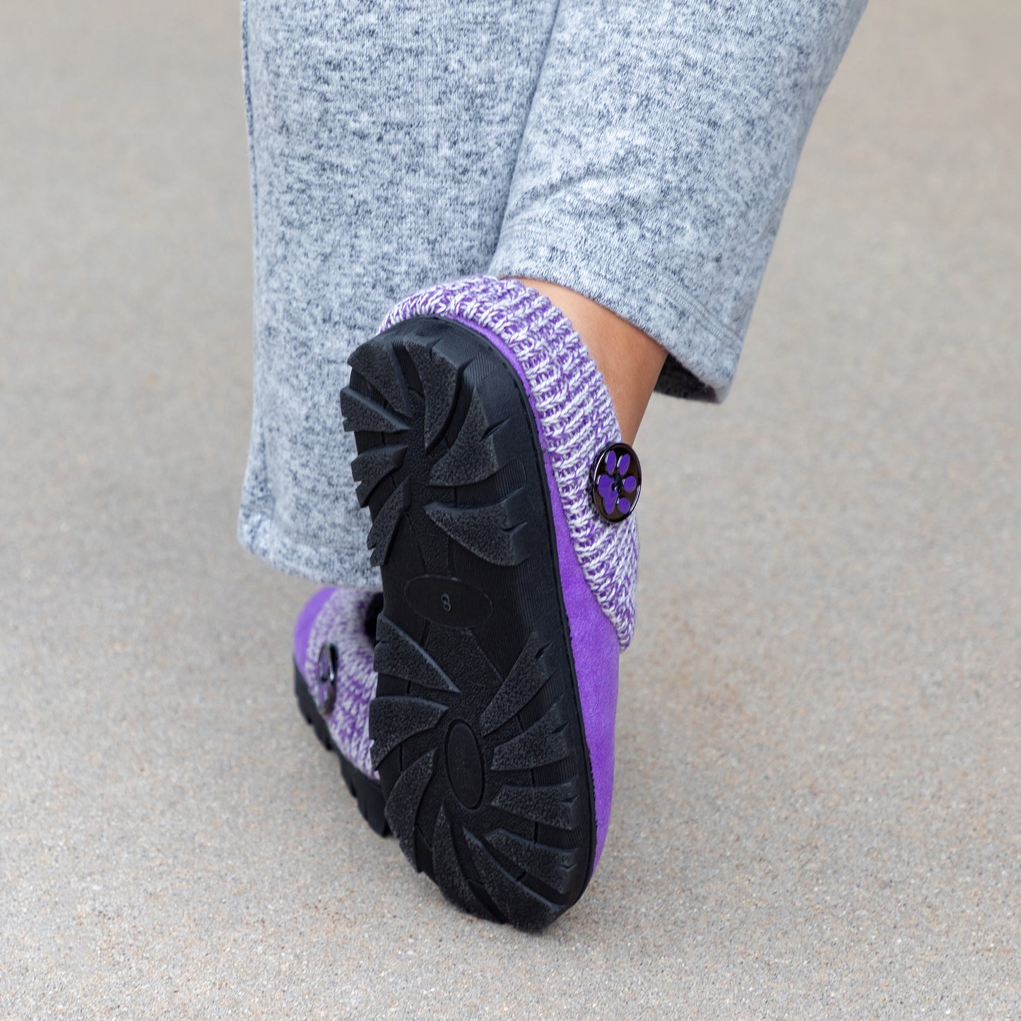 Feel the warmth radiate from your heart to your feet! Your fight for animal rescue causes doesn't take a break, but your feet can, thanks to these clog-style super soft fuzzy-lined slippers. Featuring a cable knit upper with a paw print displayed on the side button, and hard soles for indoor/outdoor wear.