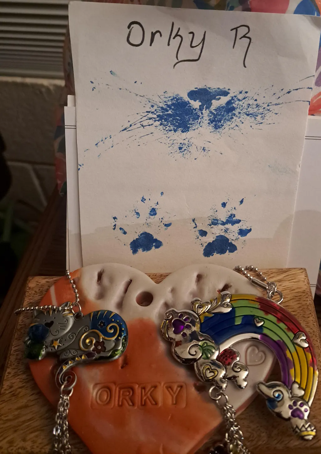 I lost my 17 year old cat to age. I bought the rainbow bridge and cat charm to place with his paw print. Perfect.