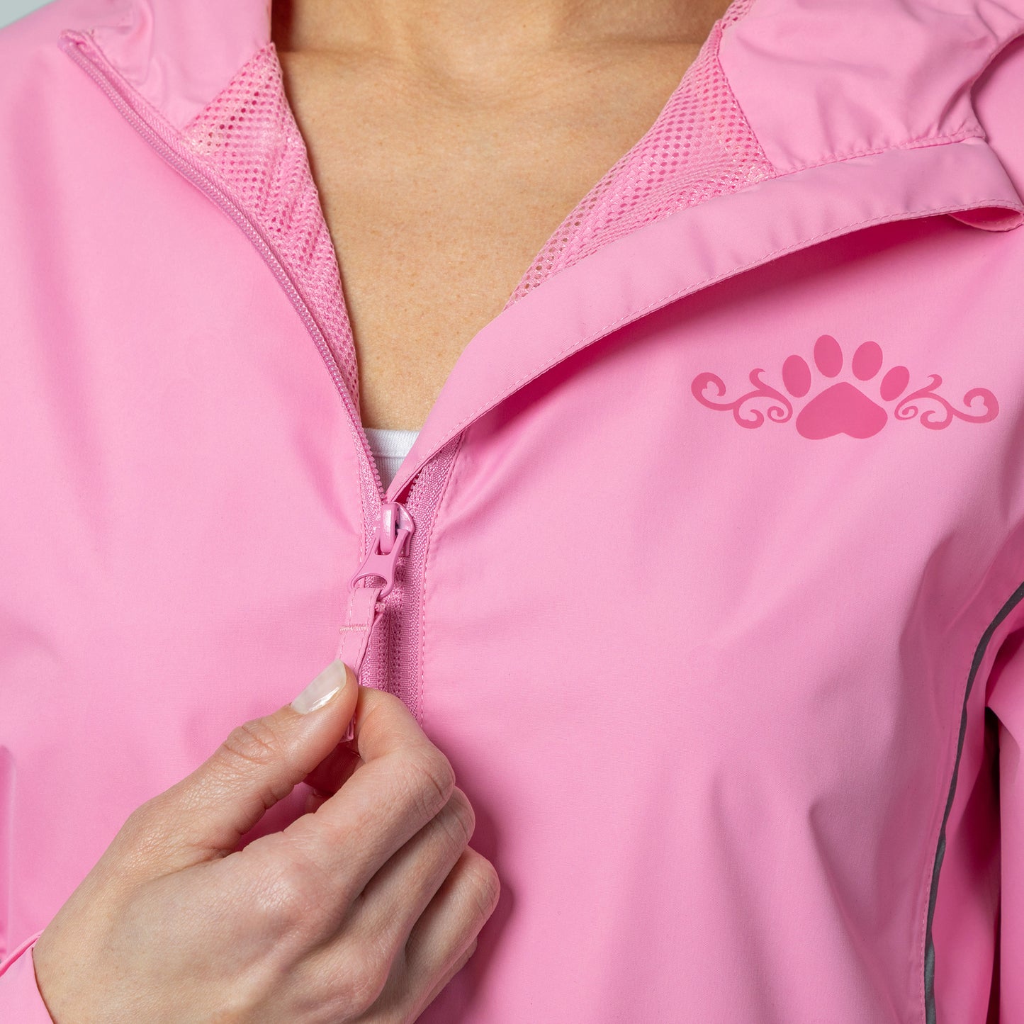 When it comes to staying comfortable and dry, it's the little things that make all the difference. A bungee cord and toggles along the hood keep it perfectly fitted while keeping rain out. Elastic sleeve cuffs keep you dry, and the chin guard at the top of the zipper adds comfort. The best part? Zipper closures on the side pockets, keeping your essentials paw-fectly in place!