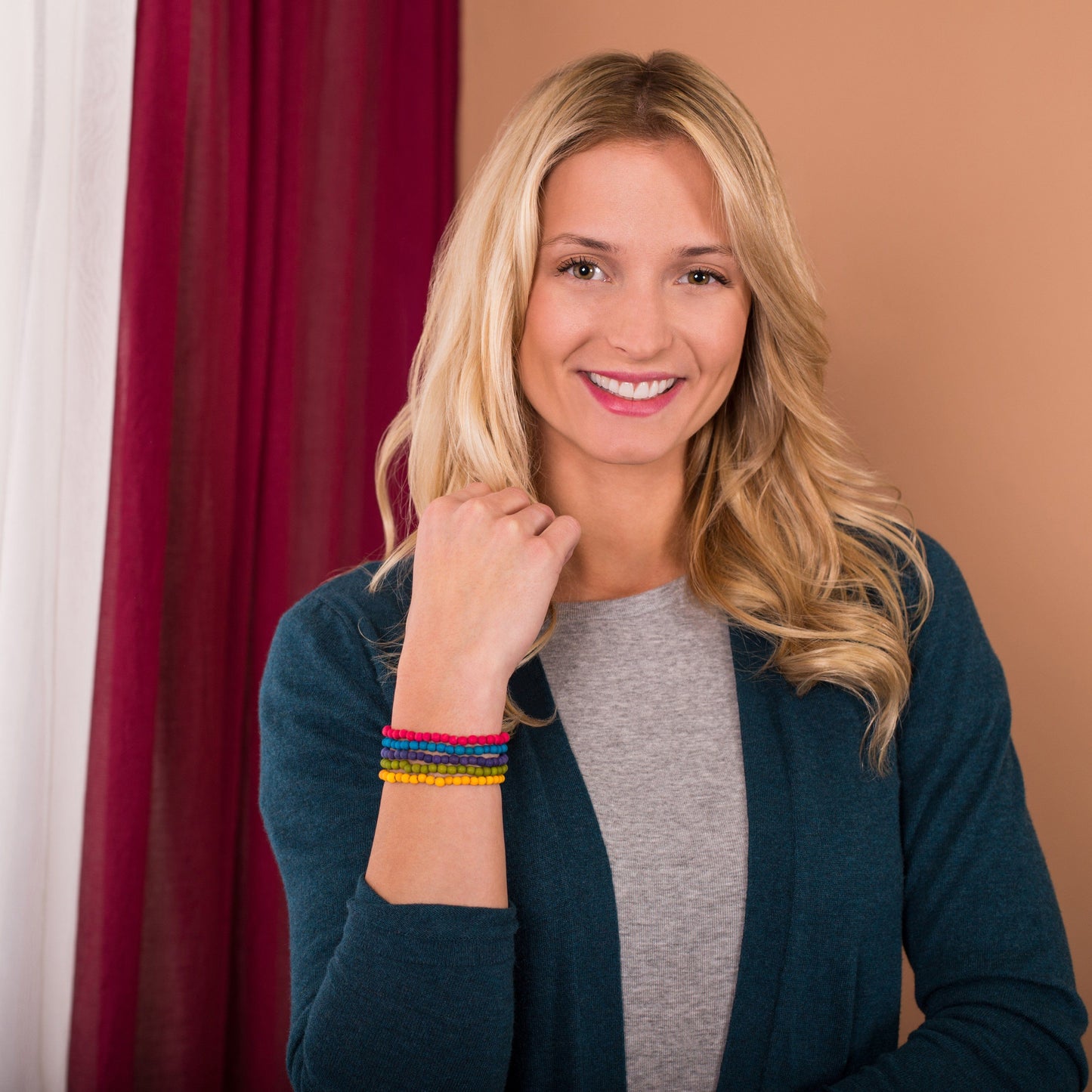 Strands of vibrant chirrilla beads are paired together to form this charming fair-trade accessory! Handmade in Colombia, this colorful set can be mixed-and-matched to go with your look.