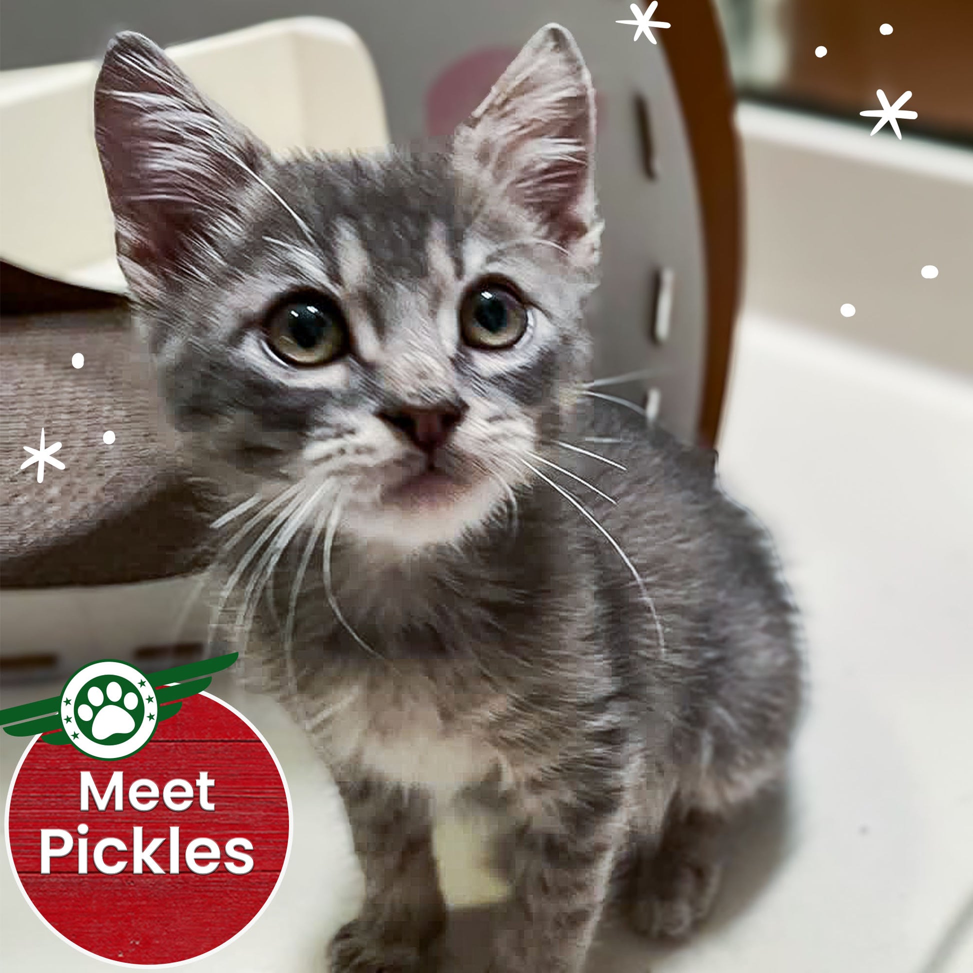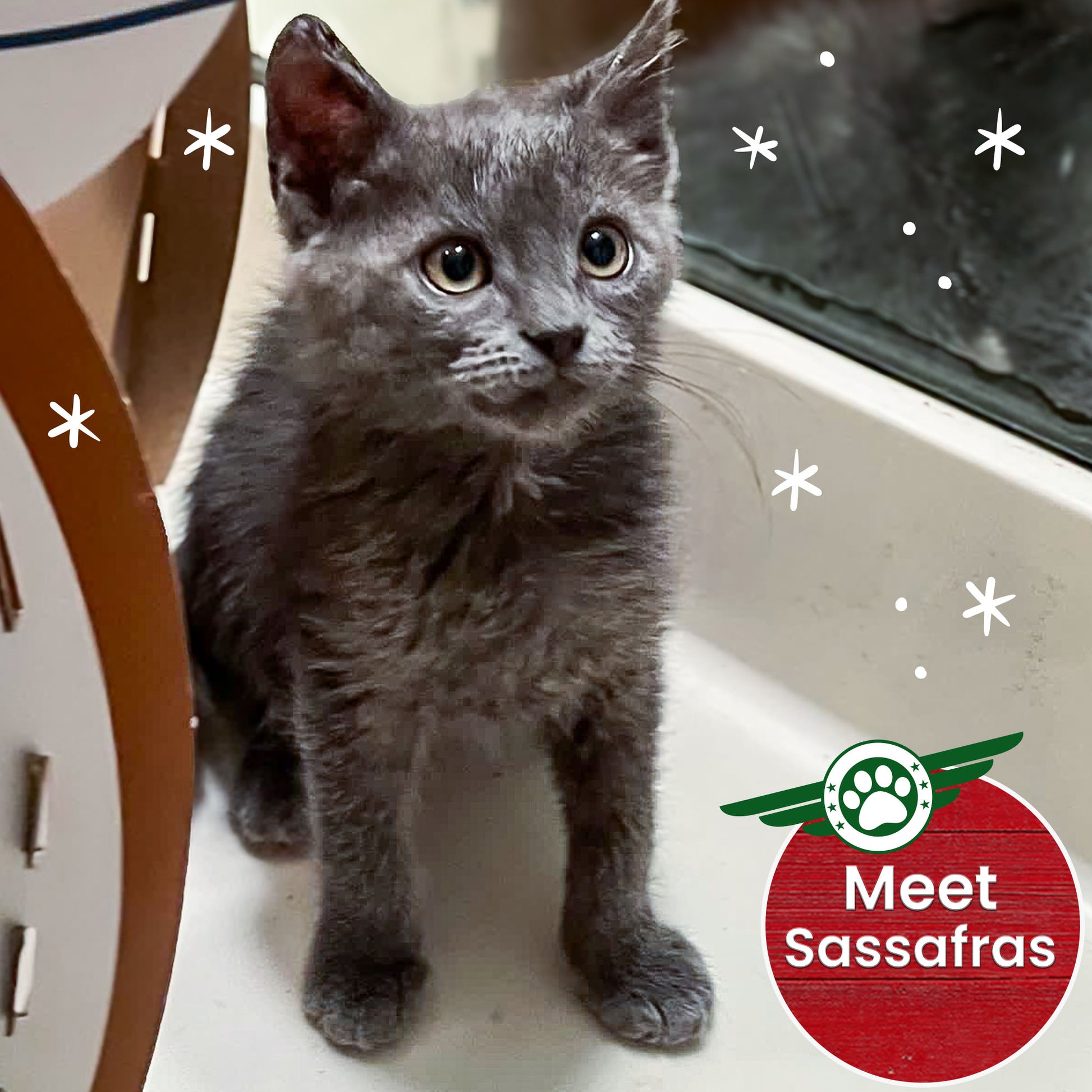 Their caretakers shared, "Pickles (male) is curious and steady, happiest when he’s exploring or curled up nearby. Sassafras (female) is playful and observant, quick to engage and even quicker to purr."