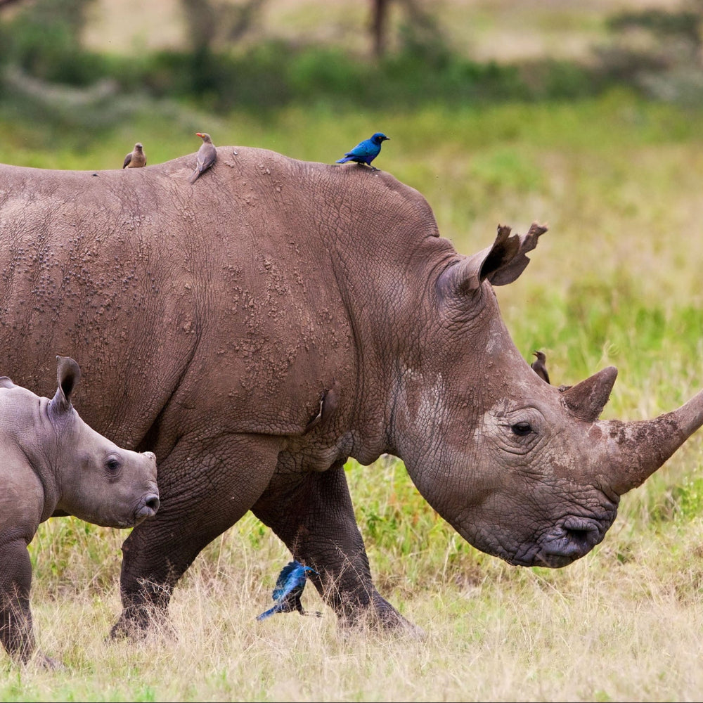 Over the past 40 years, rhino populations have dropped over 95%. Of the five species of rhino on the planet, three of them are critically endangered: the black rhino, the Sumatran Rhino, and the Javan Rhino. Rhinos play an important role in their countries; they bring in large amounts of income from tourism and are vital to the ecosystem. In fact, their dung supports fly, beetle and fungus species, keeping the African plains healthy!
