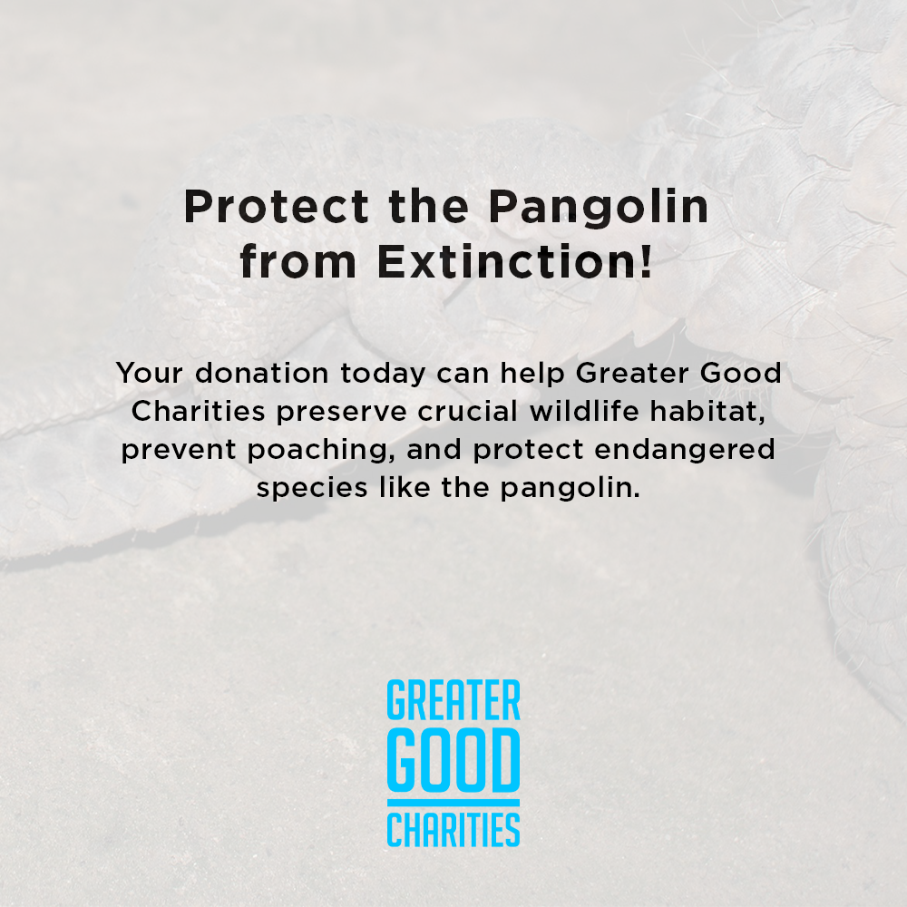 The pangolin, known for its beautiful, armor-like scales, is rapidly disappearing. They are the most trafficked mammal in the world due to being illegally poached for their meat and scales. Now, pangolins are critically endangered, and only a few remain. Will you help us save them?