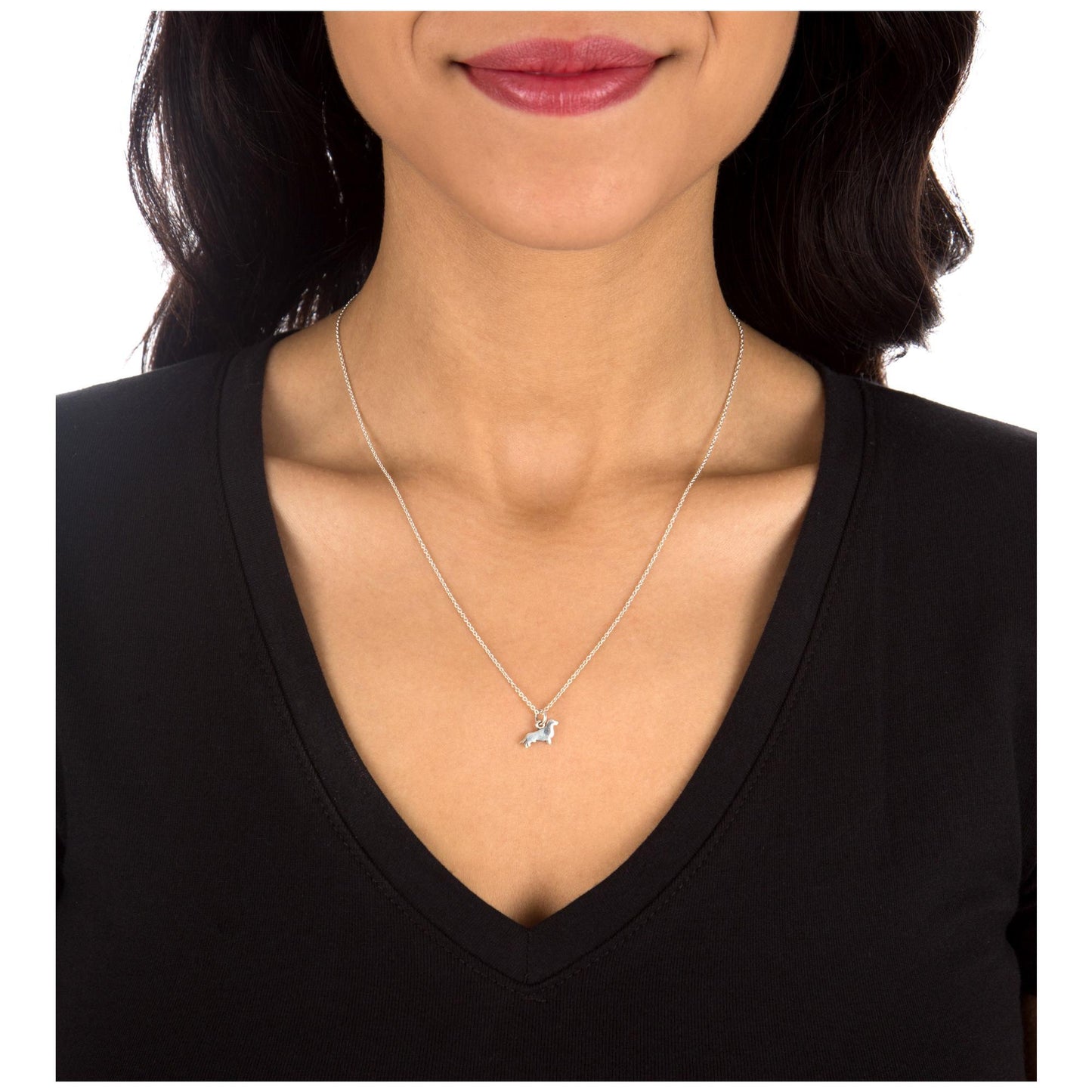This simple sterling necklace is a charming nod to the loving dog who stole your heart. A sterling silhouette of your favorite and beloved breed is just the thing to make a four-legged fashion statement!