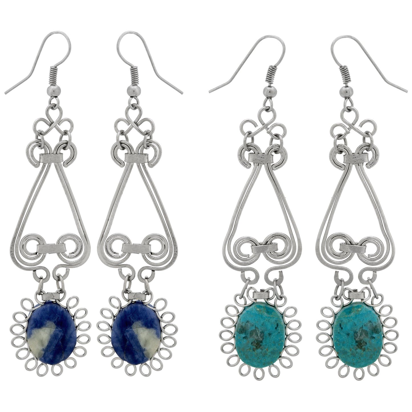 Brilliant bursts of alpaca silver swirl around each richly colored stone on this fair-trade accessory. Featuring bright, oval stones that add a vibrant yet natural feel to this handmade pair!
