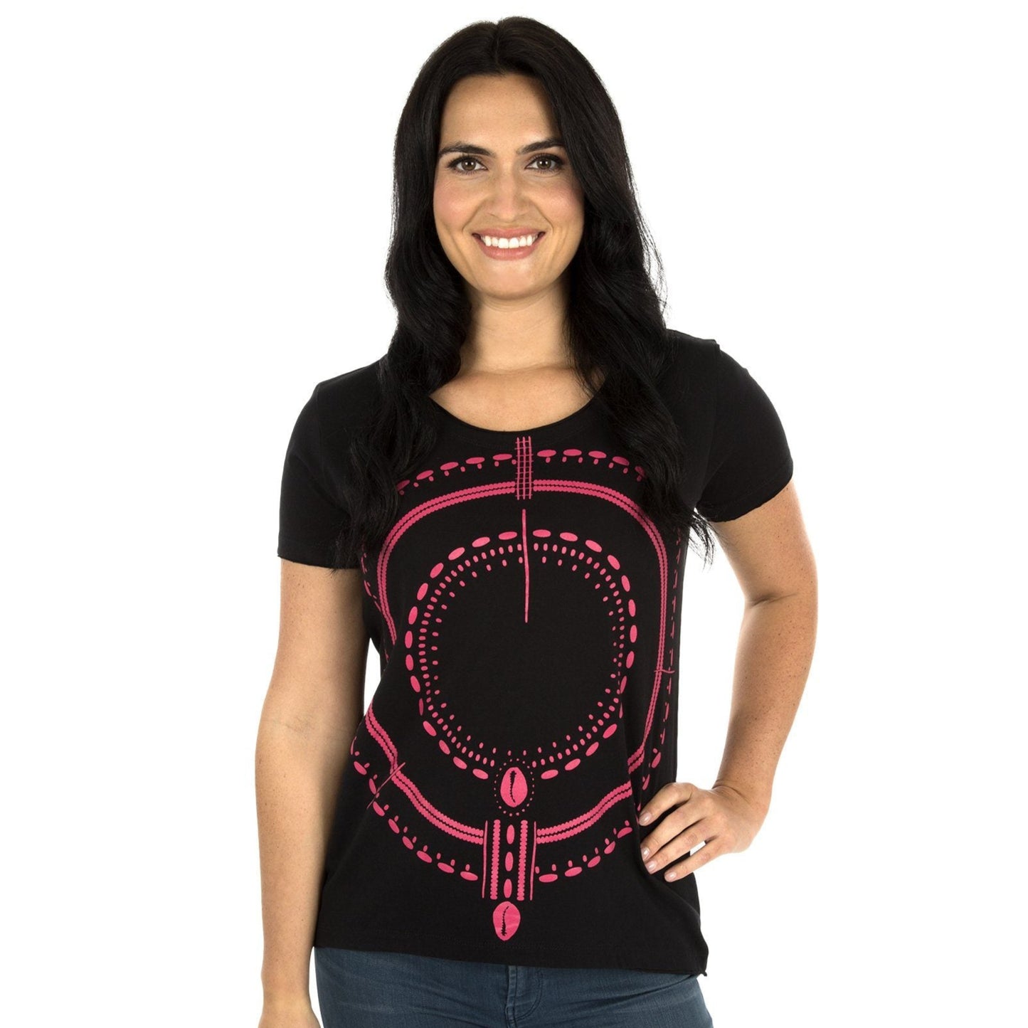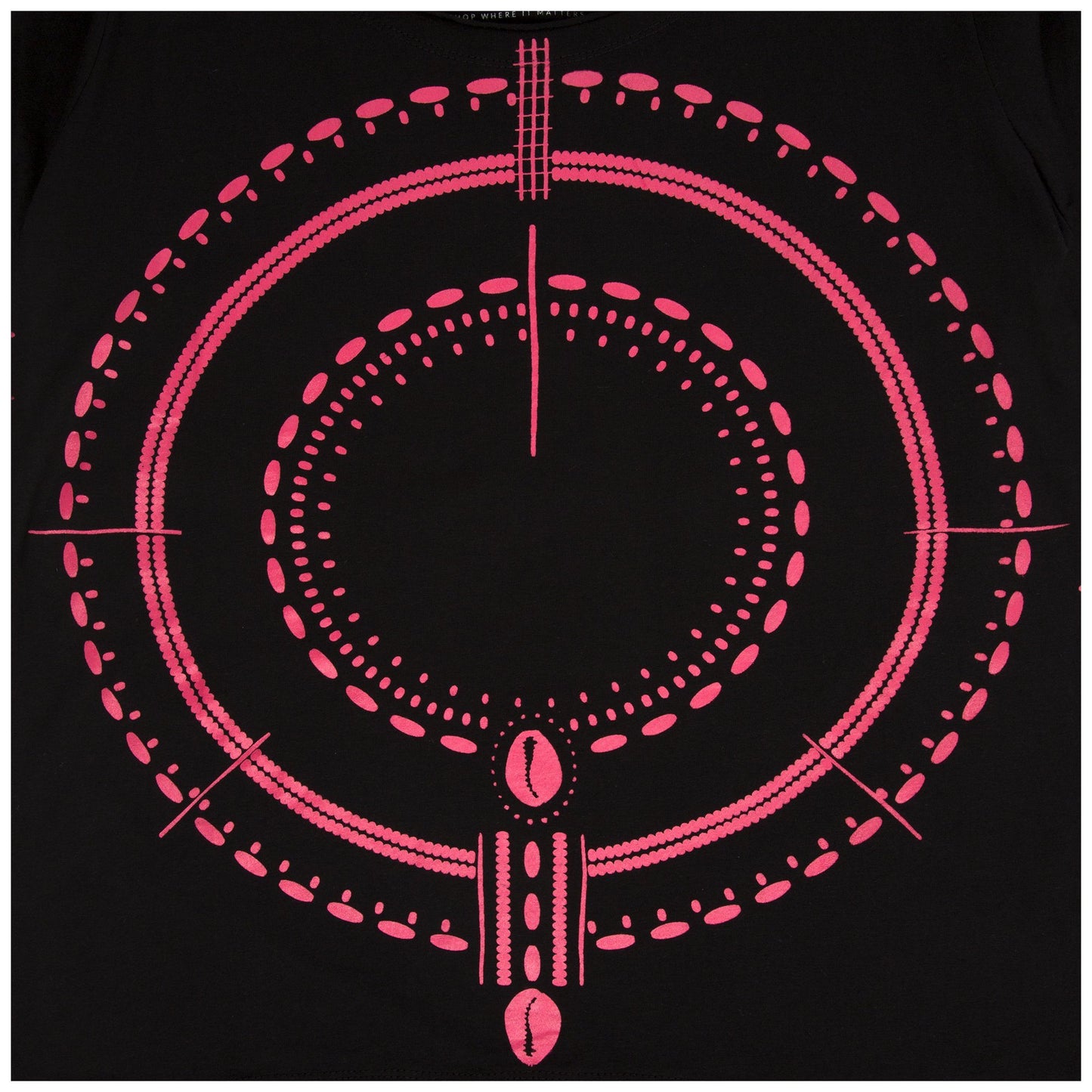 Featuring a powerful bright pink design on black cotton, this top blends creative composition and total comfort! Fairly traded from Kenya through the Wildlife Works partnership, ensuring that your wardrobe is both ethical and unique.