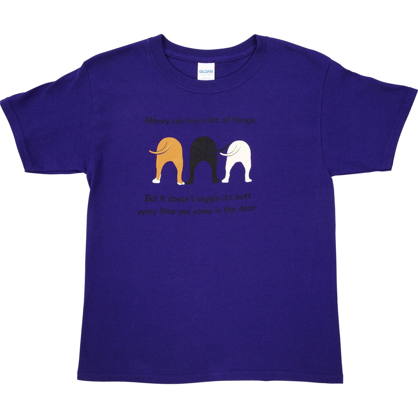 This pint-size shirt pays homage to the furry friend that makes every day worthwhile for your kiddo! Three furry little tails underscore the phrase: "Money can buy a lot of things, but it doesn't wiggle its butt every time you come in the door."