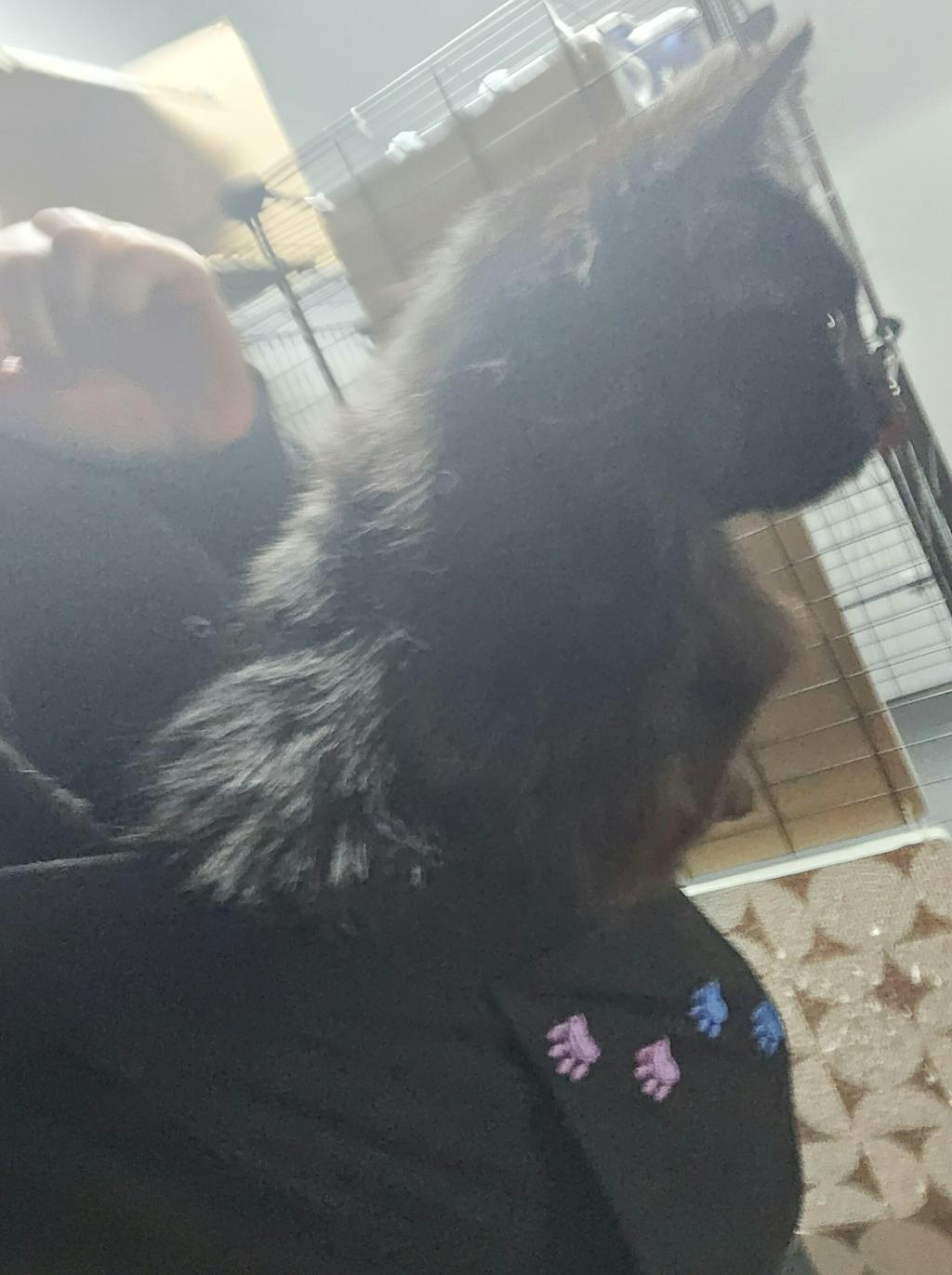 I have tried purse and sling type carriers, and they all hurt my neck. This sweatshirt is perfect! I do hide the tassels inside the shirt for my big guy.My senior lady loves it. It makes working at my computer much easier and keep her happy.