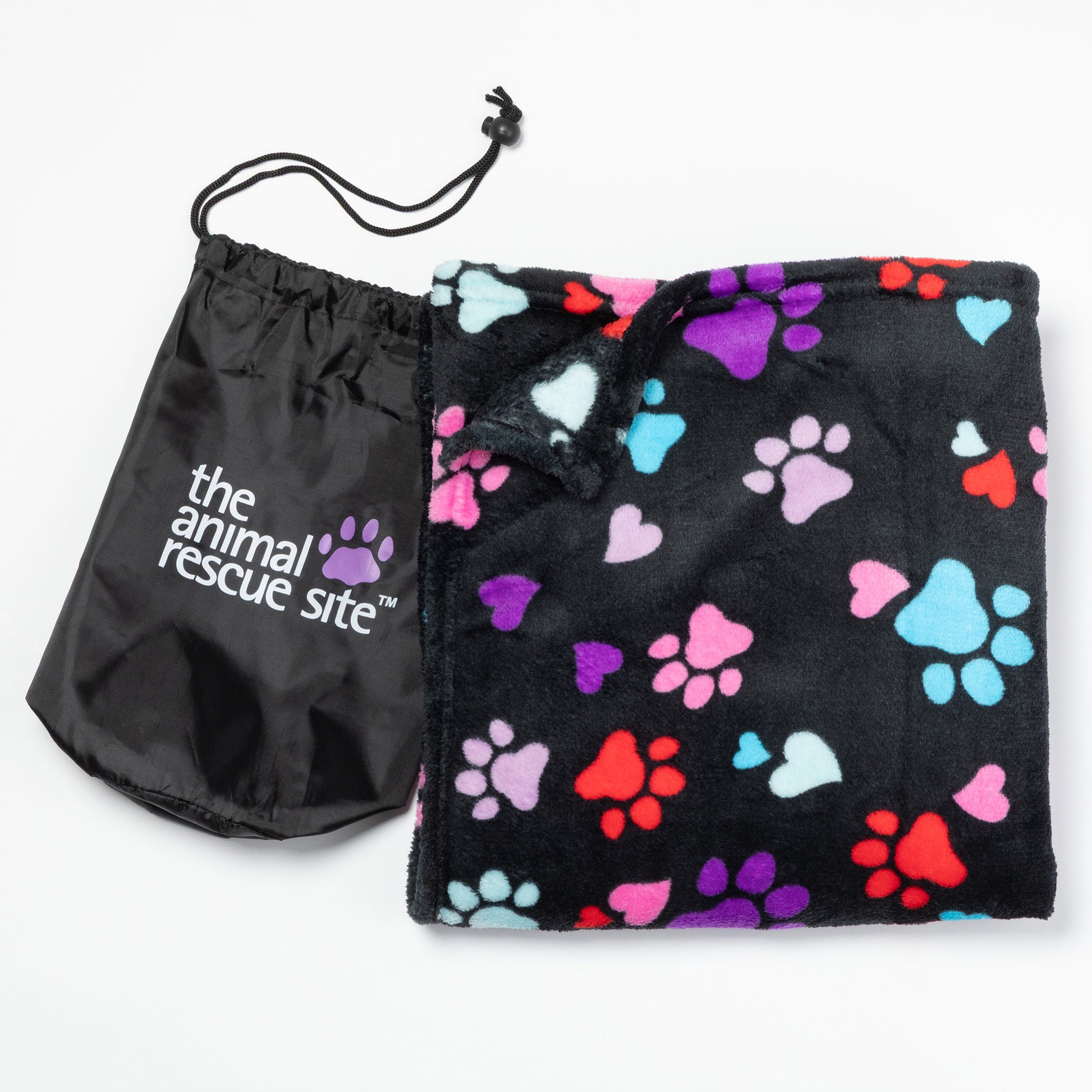 Cozy, casual, and ready to be curled up with wherever you are! Swirling paws dance in technicolor on this super soft fleece blanket. Complete with a nylon stuff sack that compacts this luxuriously soft throw, making it easy to throw in your bag, keep in your car, or take with you on your next flight!