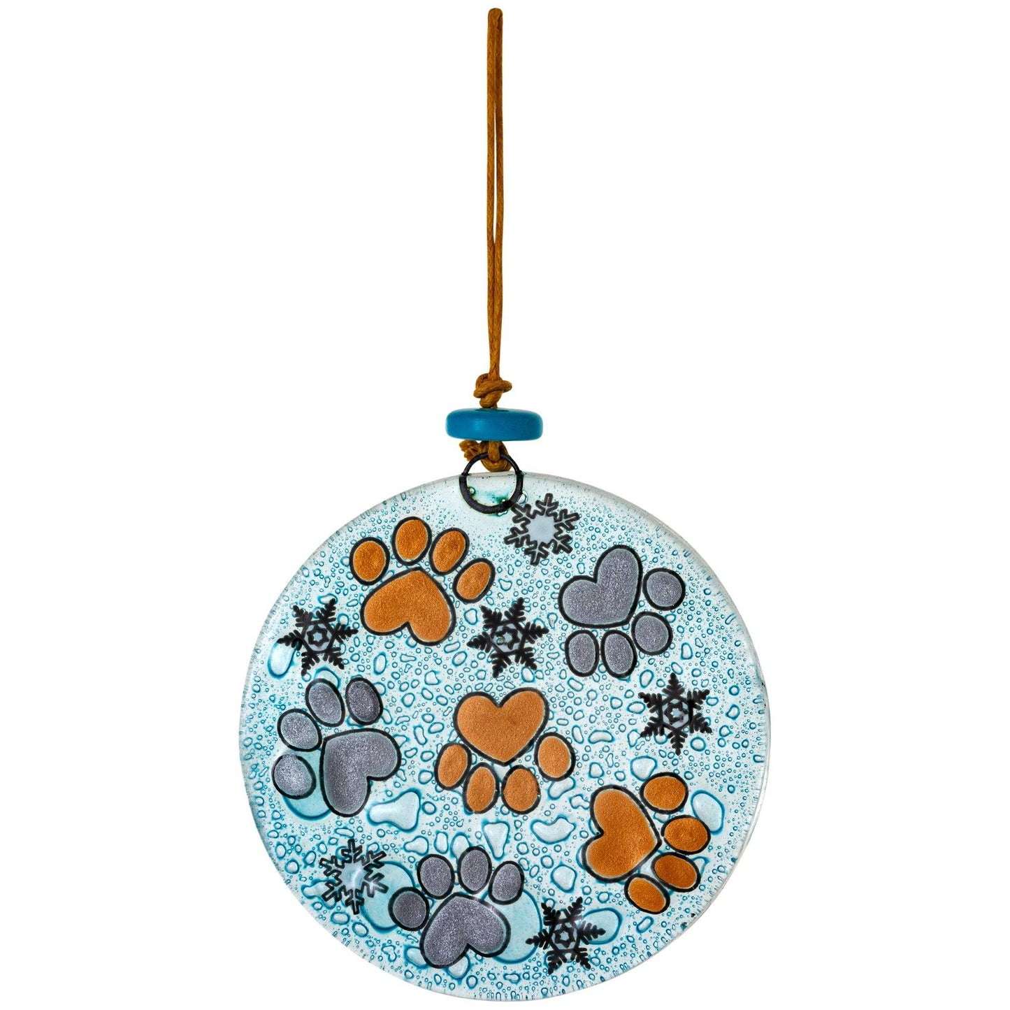 Paw prints and a ready-to-pounce feline help trim your tree in adorable fashion! Showing your love of furry friends as well as your dedication to supporting fair-trade artisans, this recycled glass ornament is a character-filled addition to your tree.