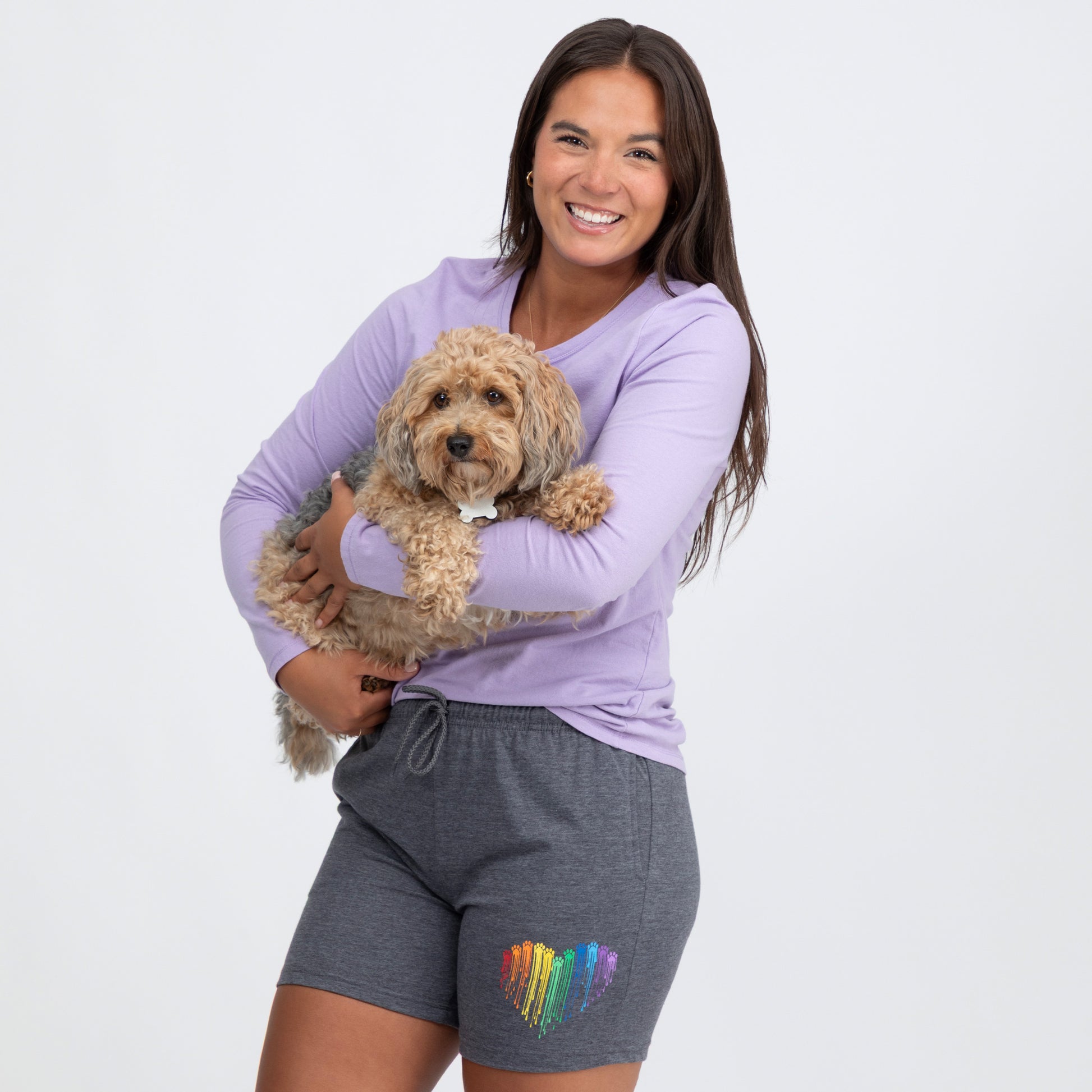 I am soooooo happy with the quality, versatility and price of my rainbow pawprint heart shorts that I bought a second pair!!!!!