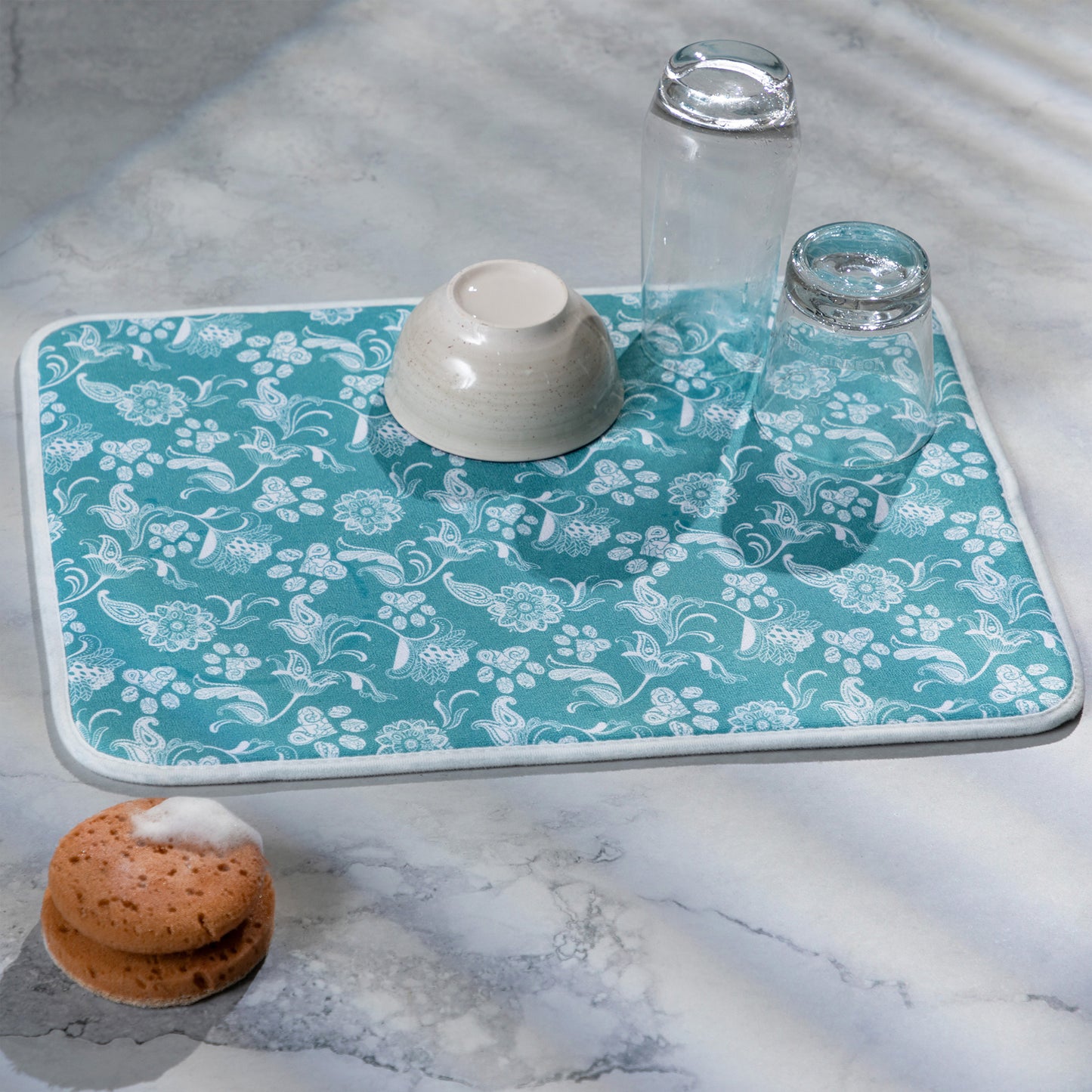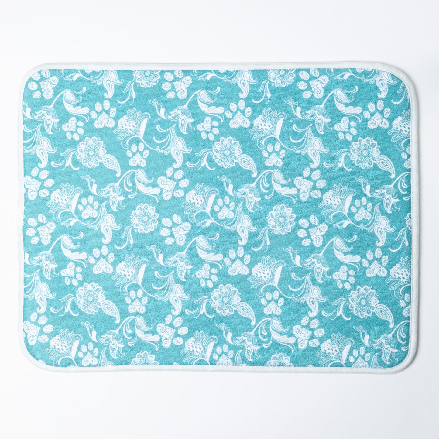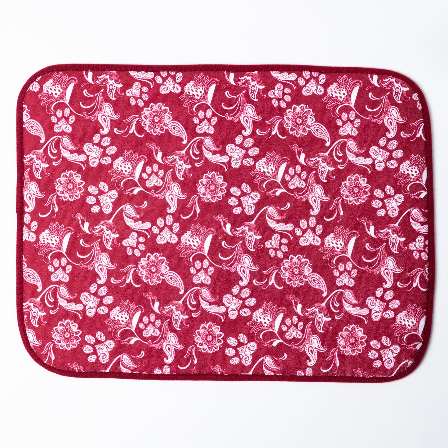 Add a touch of charm and functionality to your kitchen with a brightly colored dish drying mat! Featuring a beautifully intricate floral and paisley paw print design, this ultra-absorbent mat keeps your counters dry while providing a soft and cushioned space for your dishes. Made with durable, quick-drying fabric, it’s perfect for everyday use and easy to clean. Available in a variety of colors to complement any kitchen décor, this stylish and practical mat is a must-have for pet lovers and home chefs alike!