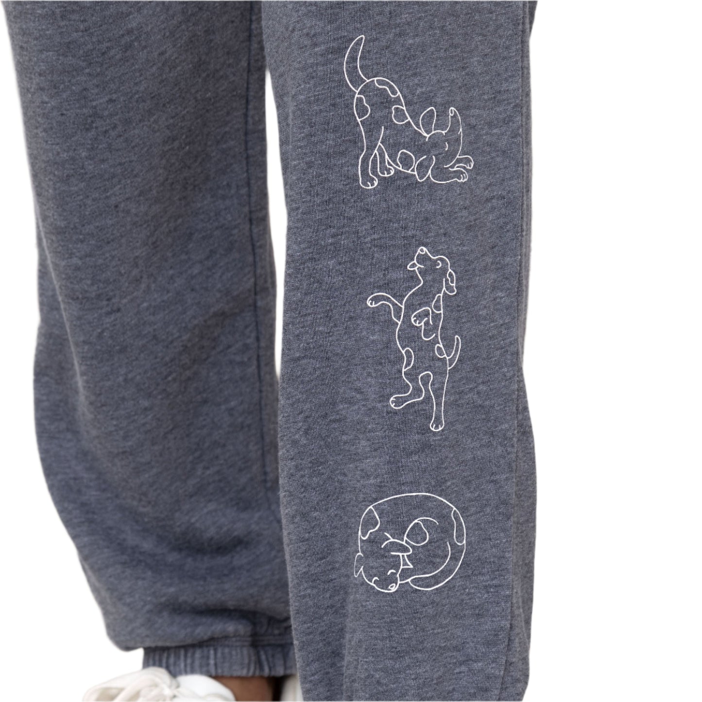 Lounge with love for your furry friends! Reflect the importance of the animals in your life with this pair of burnout gray sweatpants. With the soft, worn-in feel of your favorite sweats, this pair features a comfortable elastic drawstring waist and a loose jogger cuff -- perfectly cozy without being too tight around your ankles.