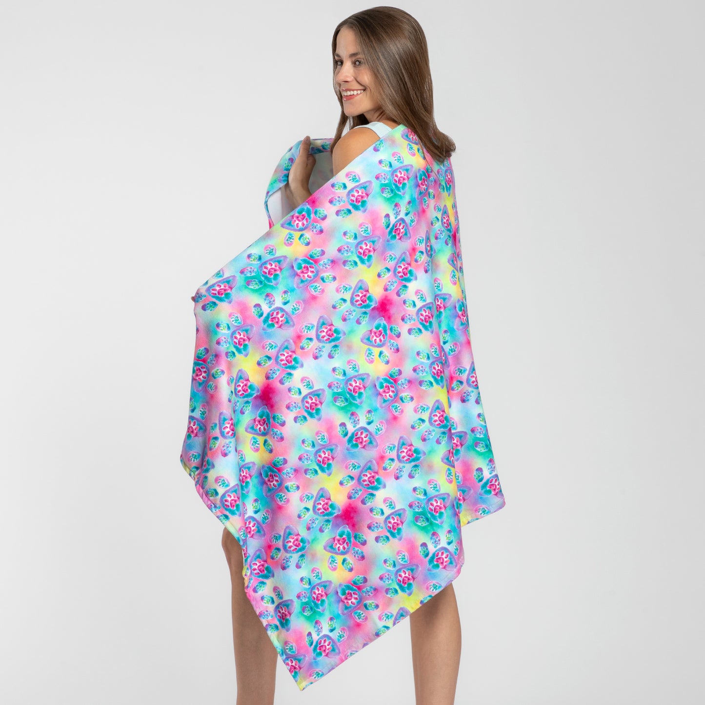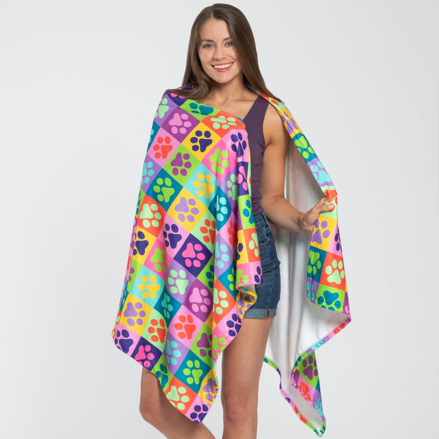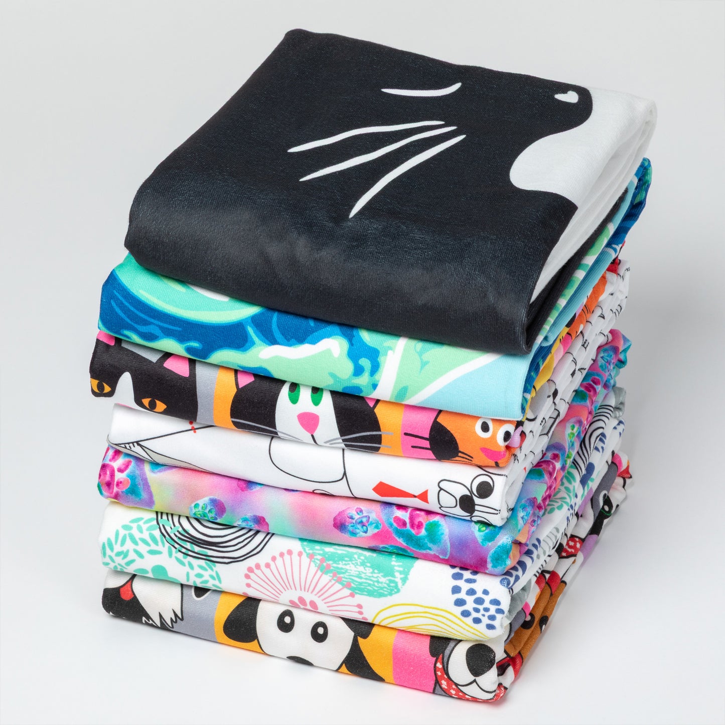Patterned in whiskered faces on an array of colorful backgrounds or bright and bold paw prints, this soft and lightweight towel inspires smiles while the soft fabric keeps you dry. Wrap up in this soft towel after a bath, while you're lounging by the pool, or on a trip to the beach!