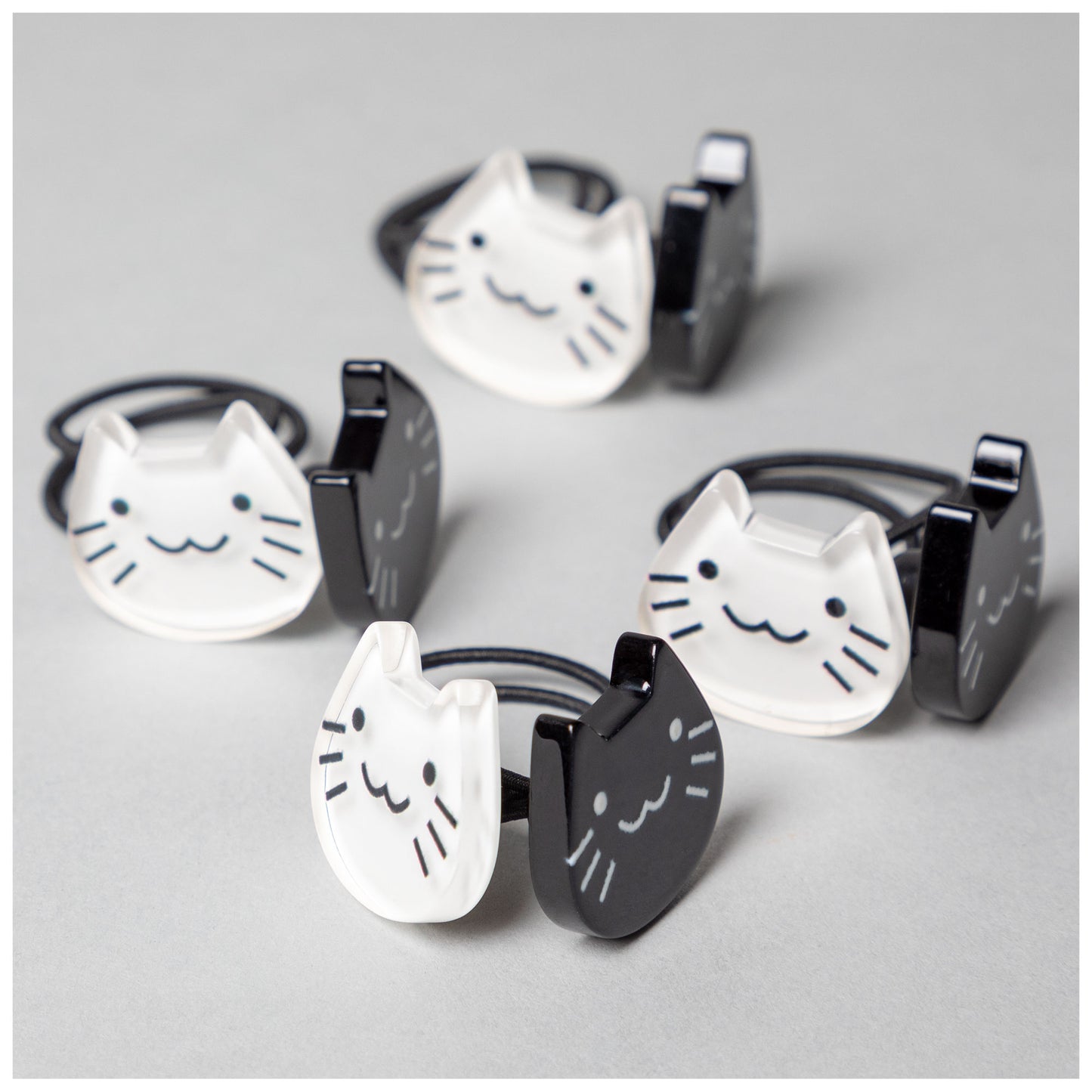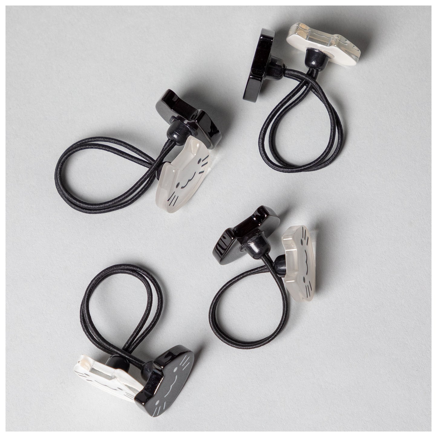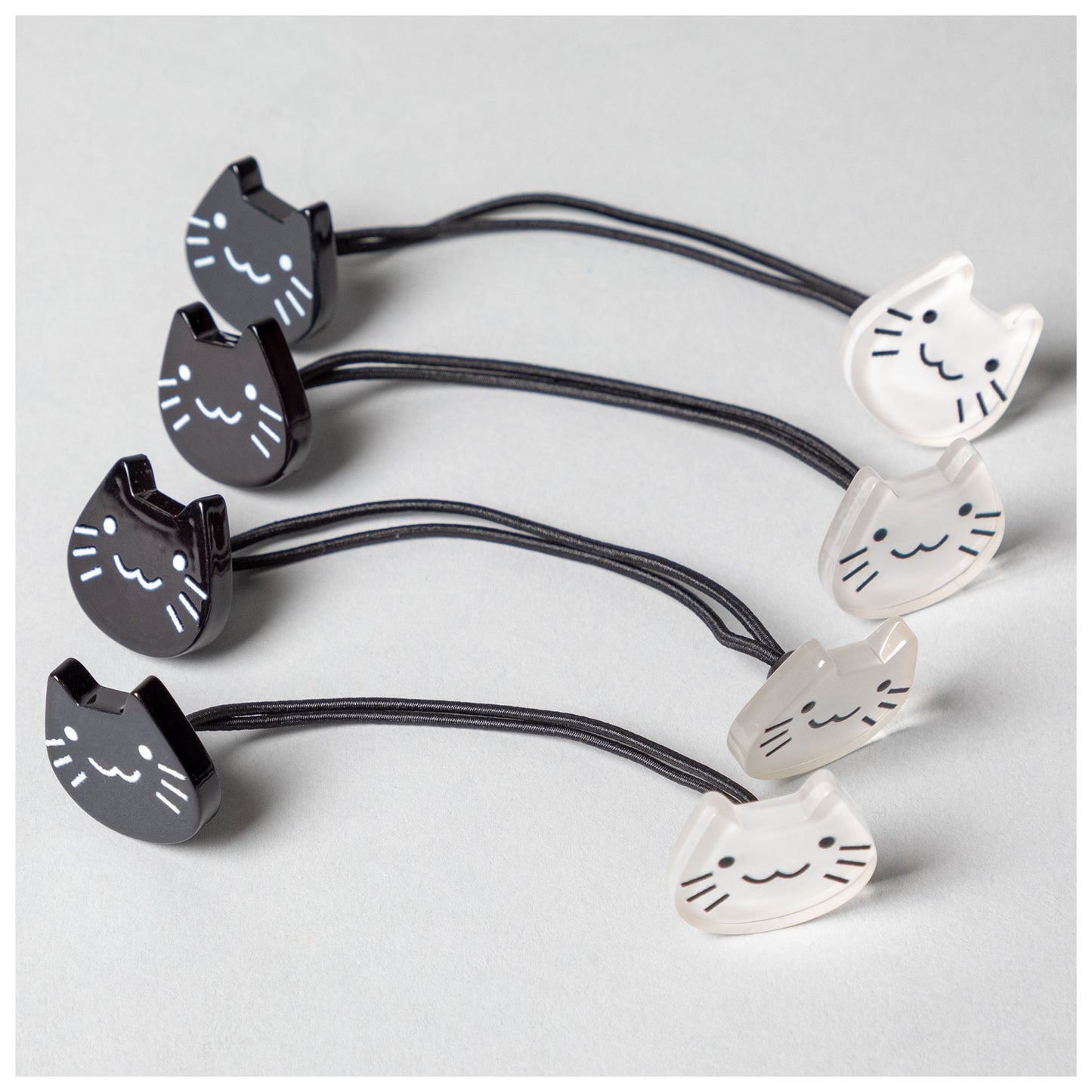 Tie back your hair with a stylish side of cat-lady energy! Topped with a black or tortoise shell patterned round little felines, this set of four hair ties is beyond cute and perfect for all ages.