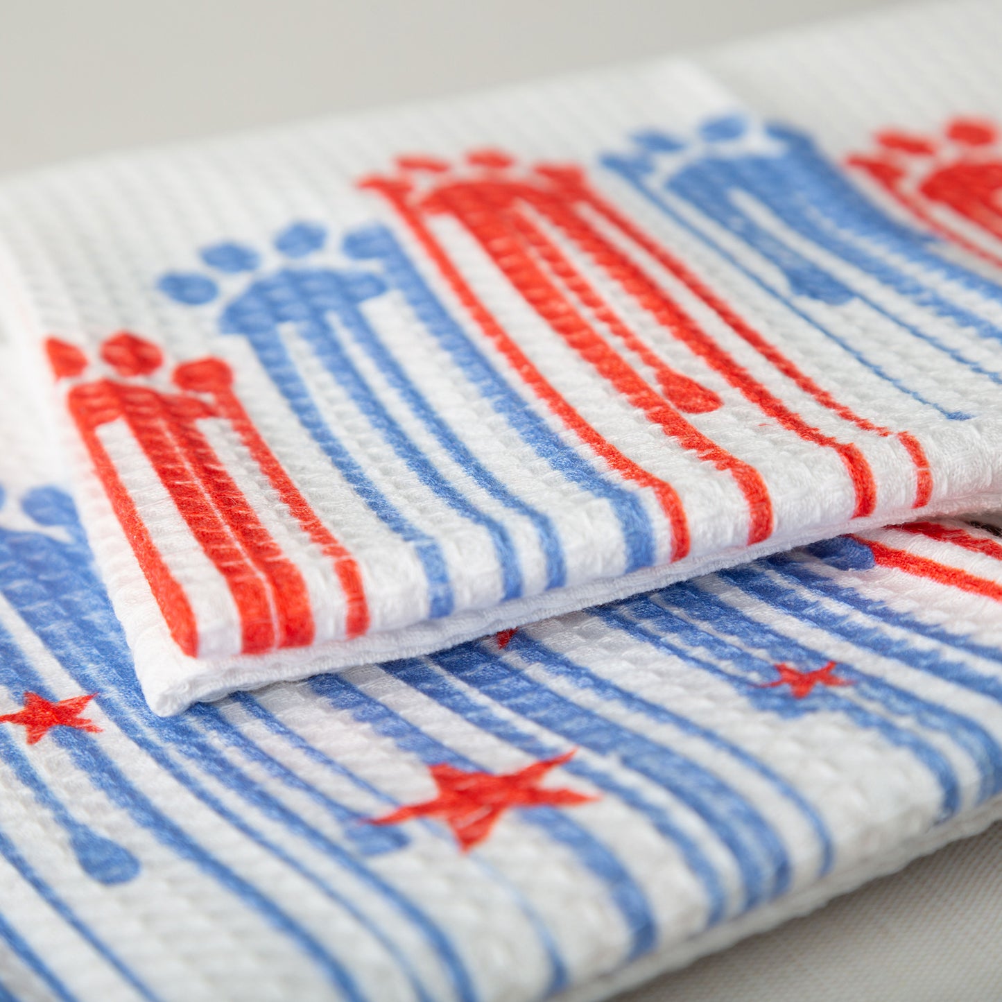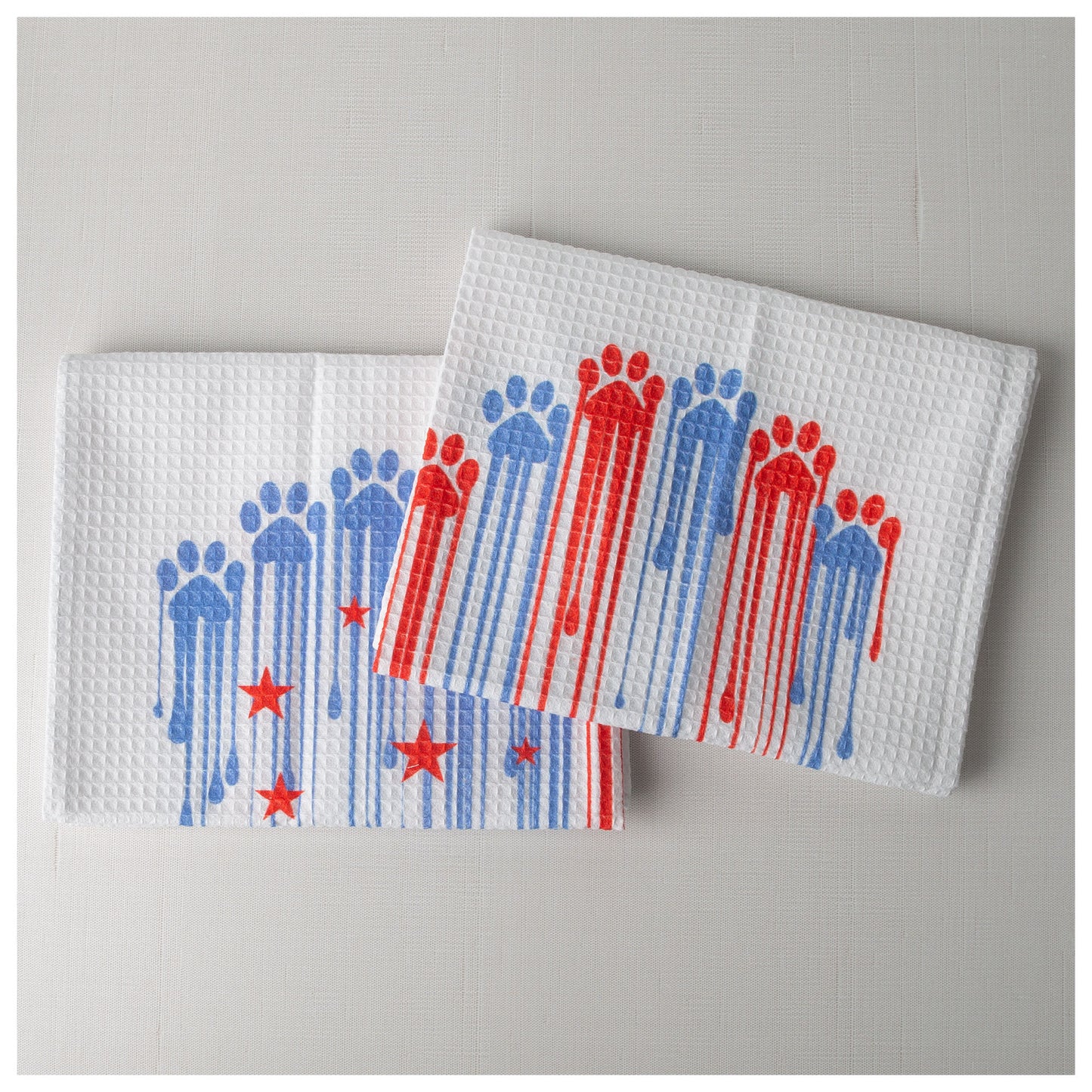 A heart made up of dripping colorful paw prints brings an animal-friendly, artistic touch to your kitchen. Or choose from paw print designs, watercolor dragonflies, or a coordinating garden scene with winged wildlife all over. Printed on 100% cotton dish towels, this pair of kitchen essentials keeps your dishes sparkling and your cooking space tidy!
