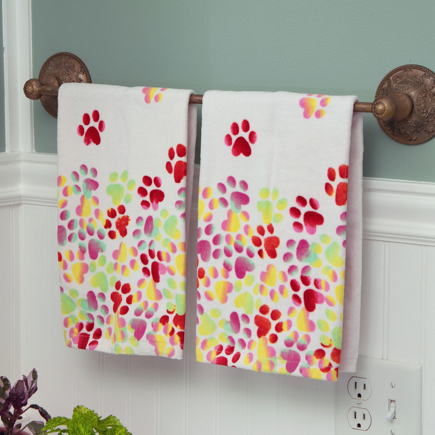 Soft-to-the-touch terry cloth fabric dries hands fast while the colorful paw print design lifts your spirit!