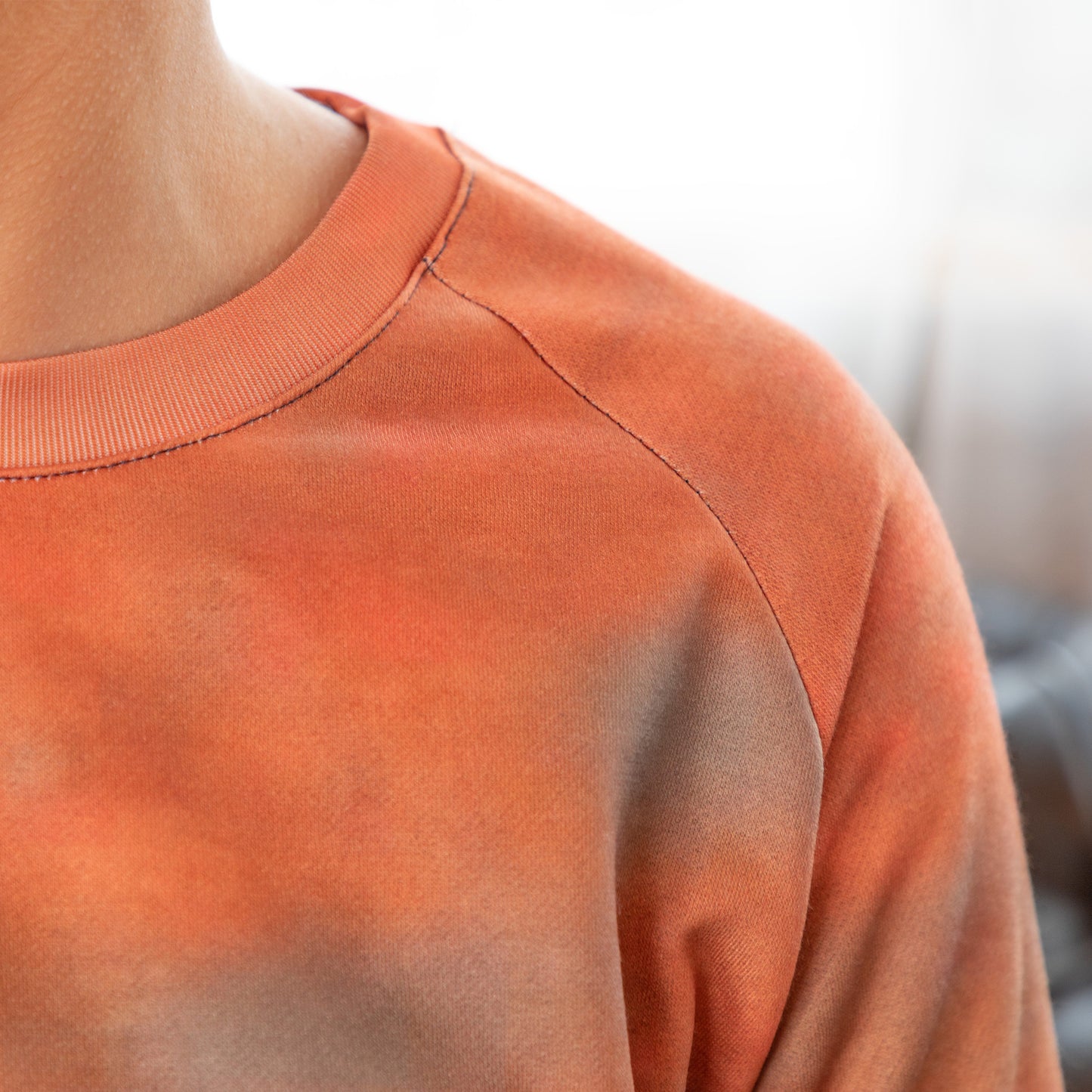 The colors of this sweatshirt are very beautiful and unusual. I've worn it out several times and have received compliments. The wrists were too tight so I cut the cuffs off and sewed under the end of the sleeves - no problem.