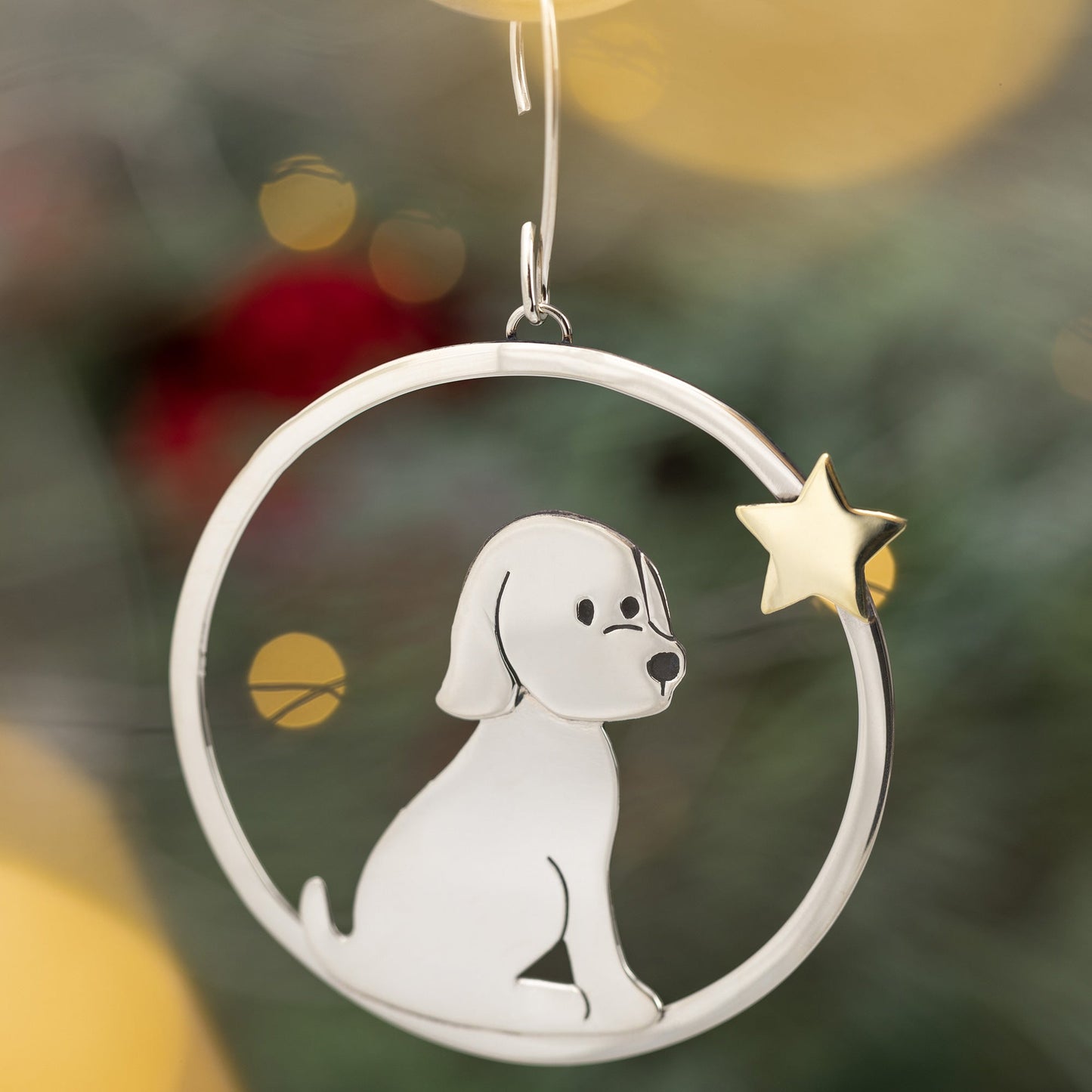 Wishing upon a brass star, this sweet silver-tone pup is a shining addition to your Christmas decor! Handcrafted by artisans in Mexico, it's a fair-trade symbol of your dog devotion.