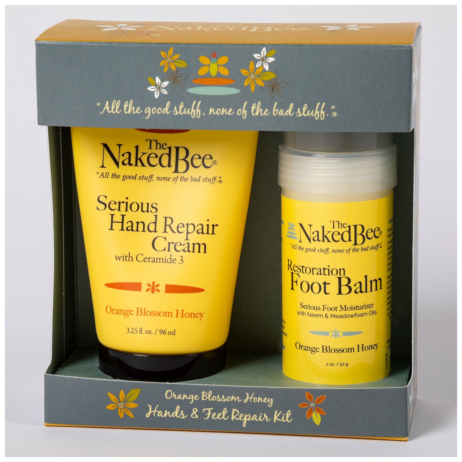 Restore rough, dry hands & feet with our Serious Hand Repair Cream and Restoration Foot Balm in our signature Orange Blossom Honey scent.