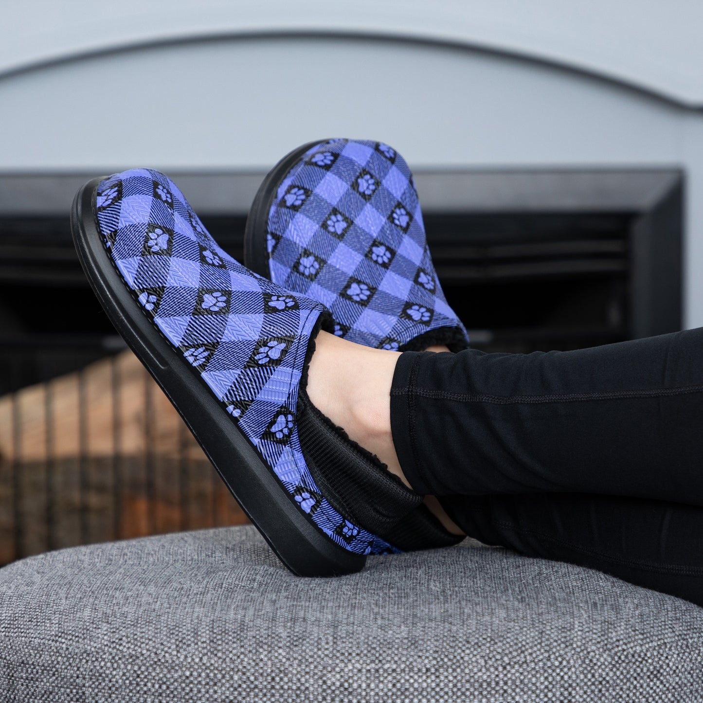 Paw Print Faux Fur Lined Slipper Shoes with Comfort Heel