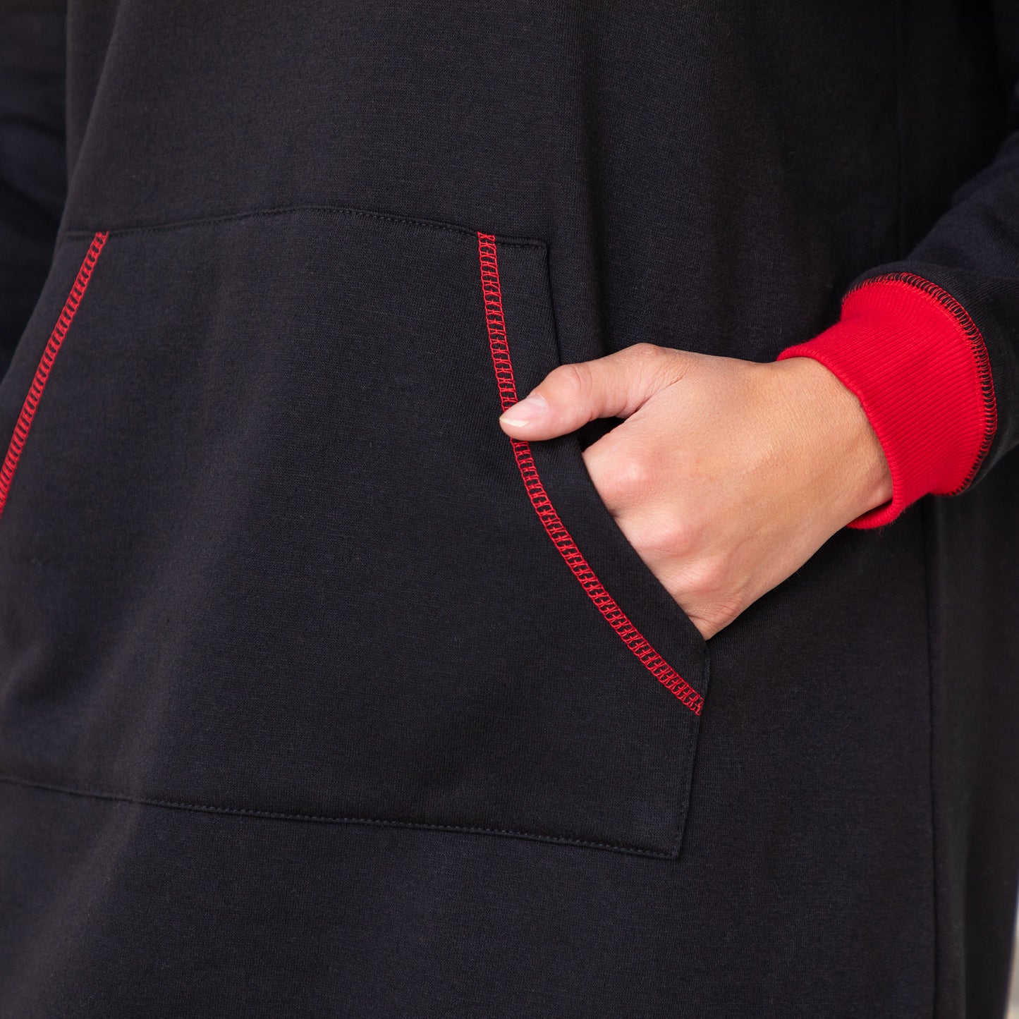 Oversized for extreme comfort, this long hoodie is built for cozying up in! Featuring a classic houndstooth print inside a paw, and contrast stitching throughout, with accent red cuffs and hem. Wrap up in this cotton blend long sweatshirt while you're at home on the couch, or outdoors enjoying a sporting event!