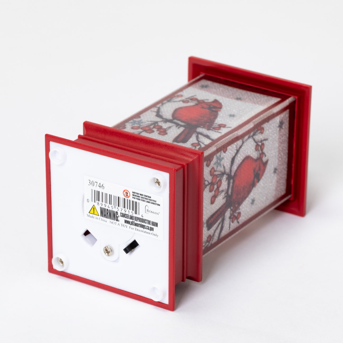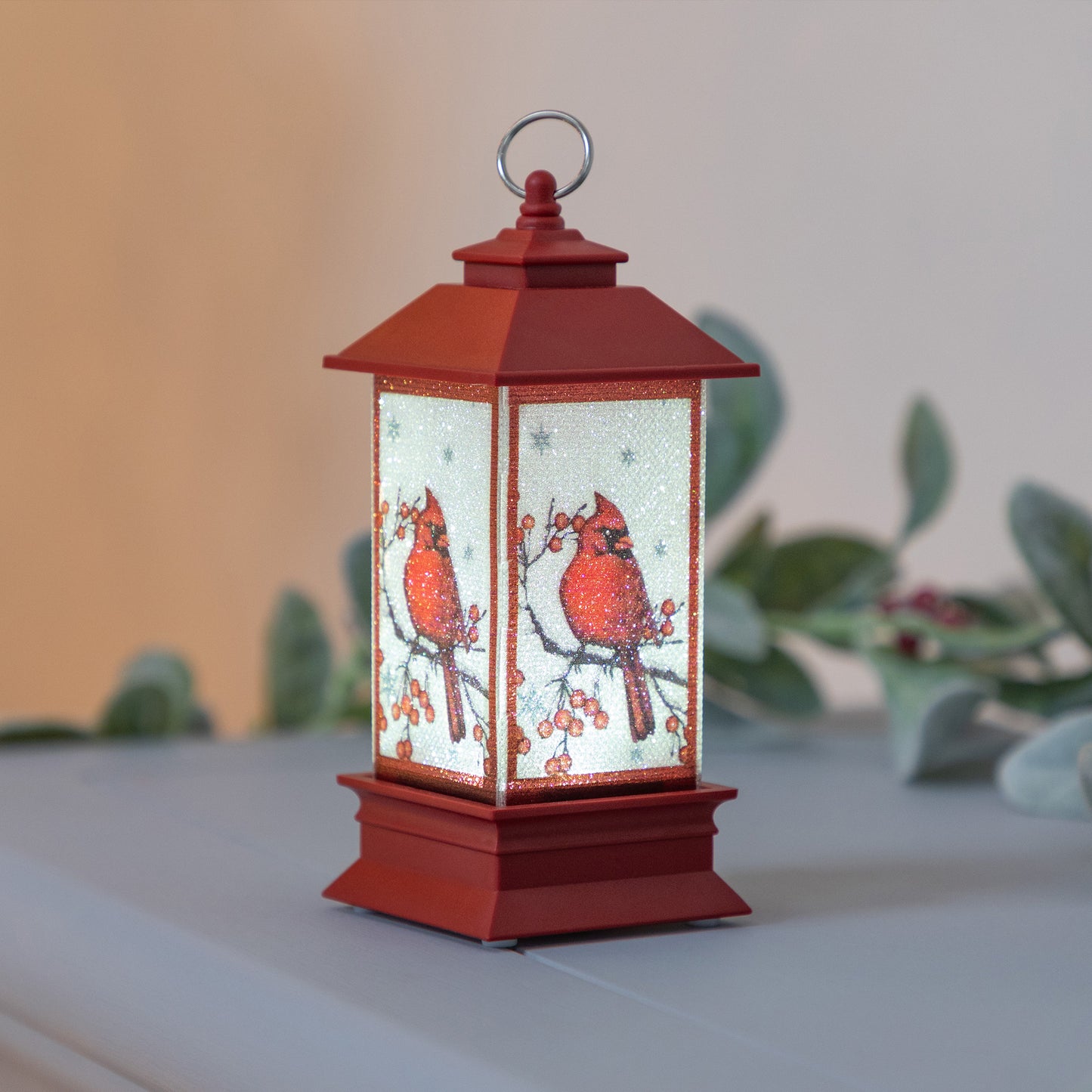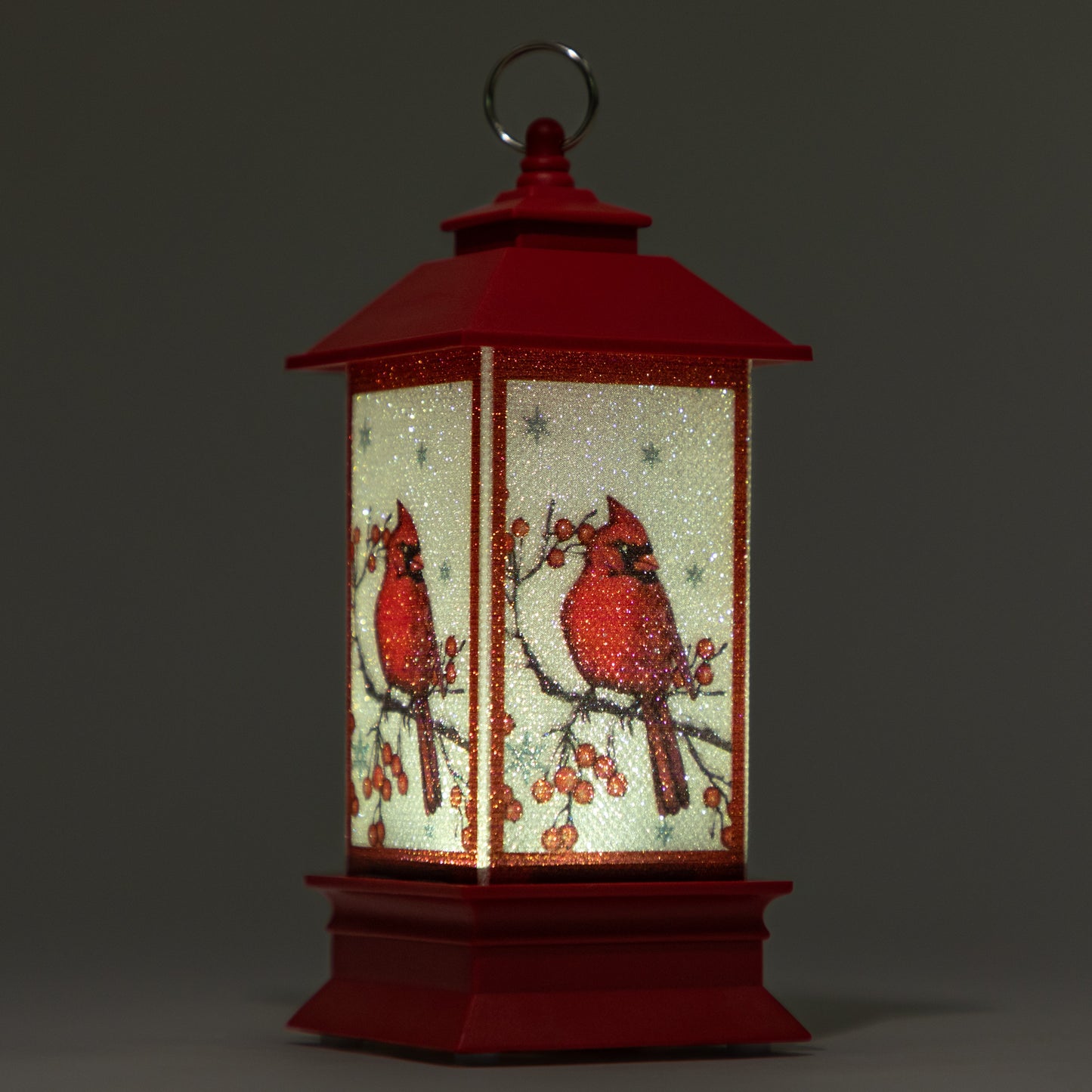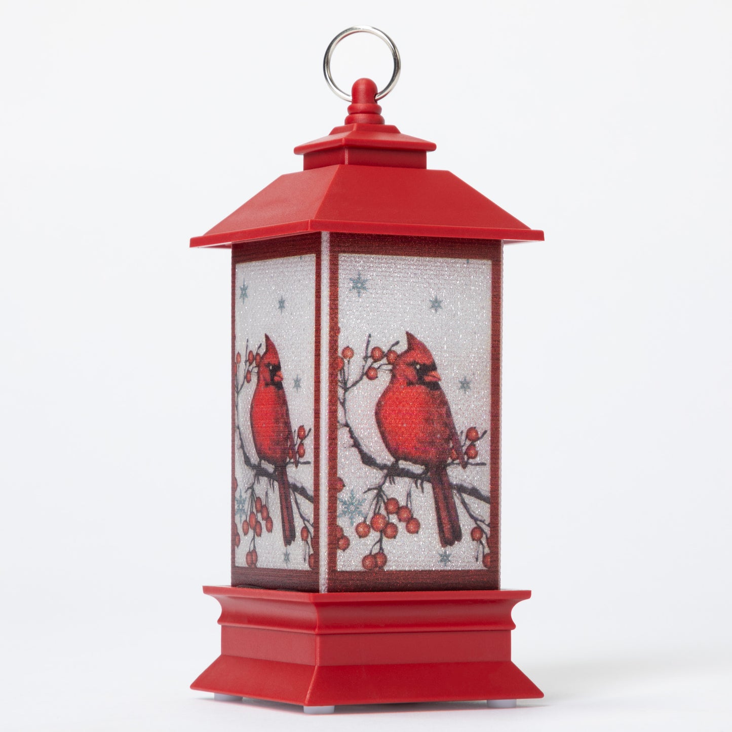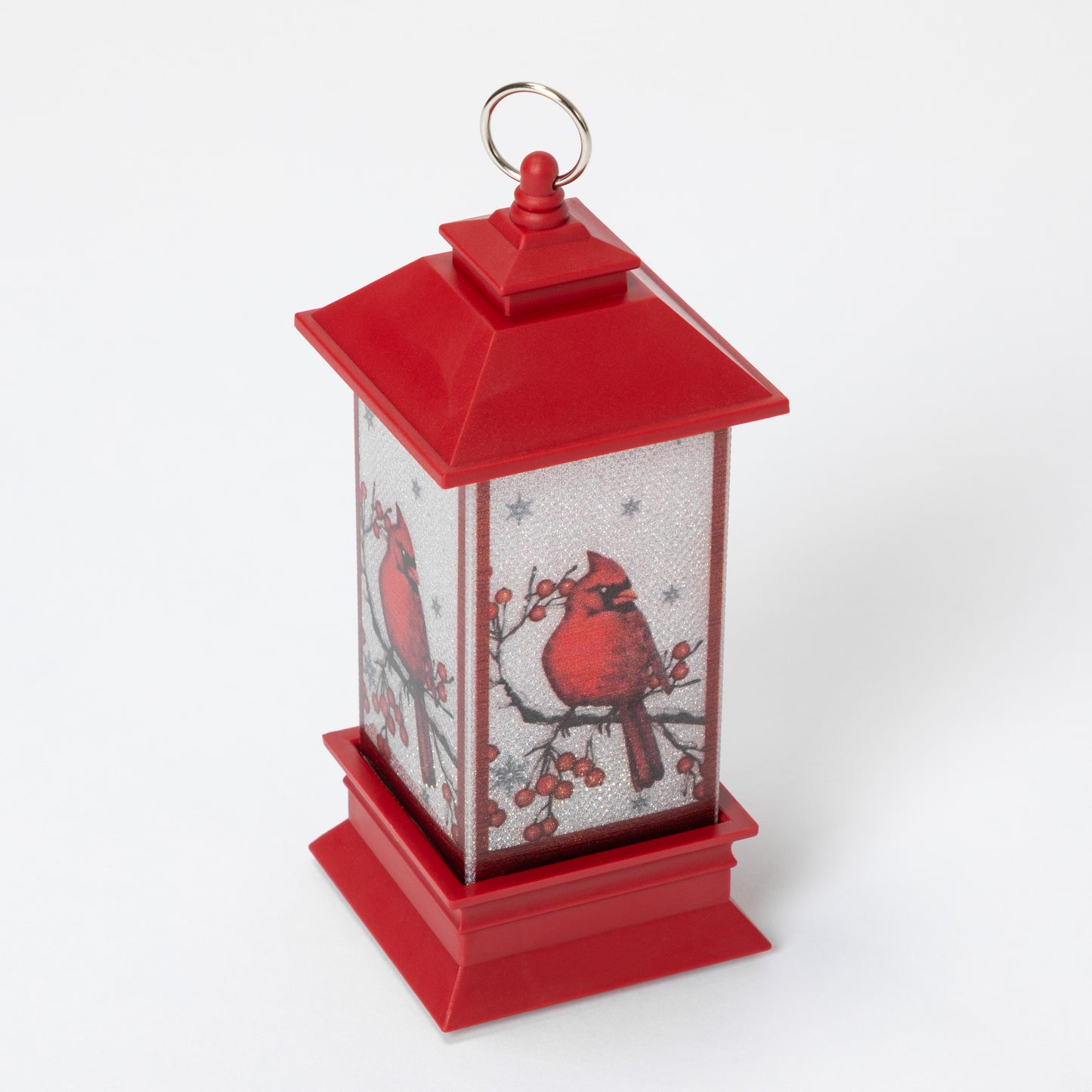 Signaling hope and joy in the cold and dark winter months, a brilliant red cardinal is featured on each side of this small lantern ornament. Flip the switch underneath for a warm glow that shines from the branches of your tree through the holiday season!