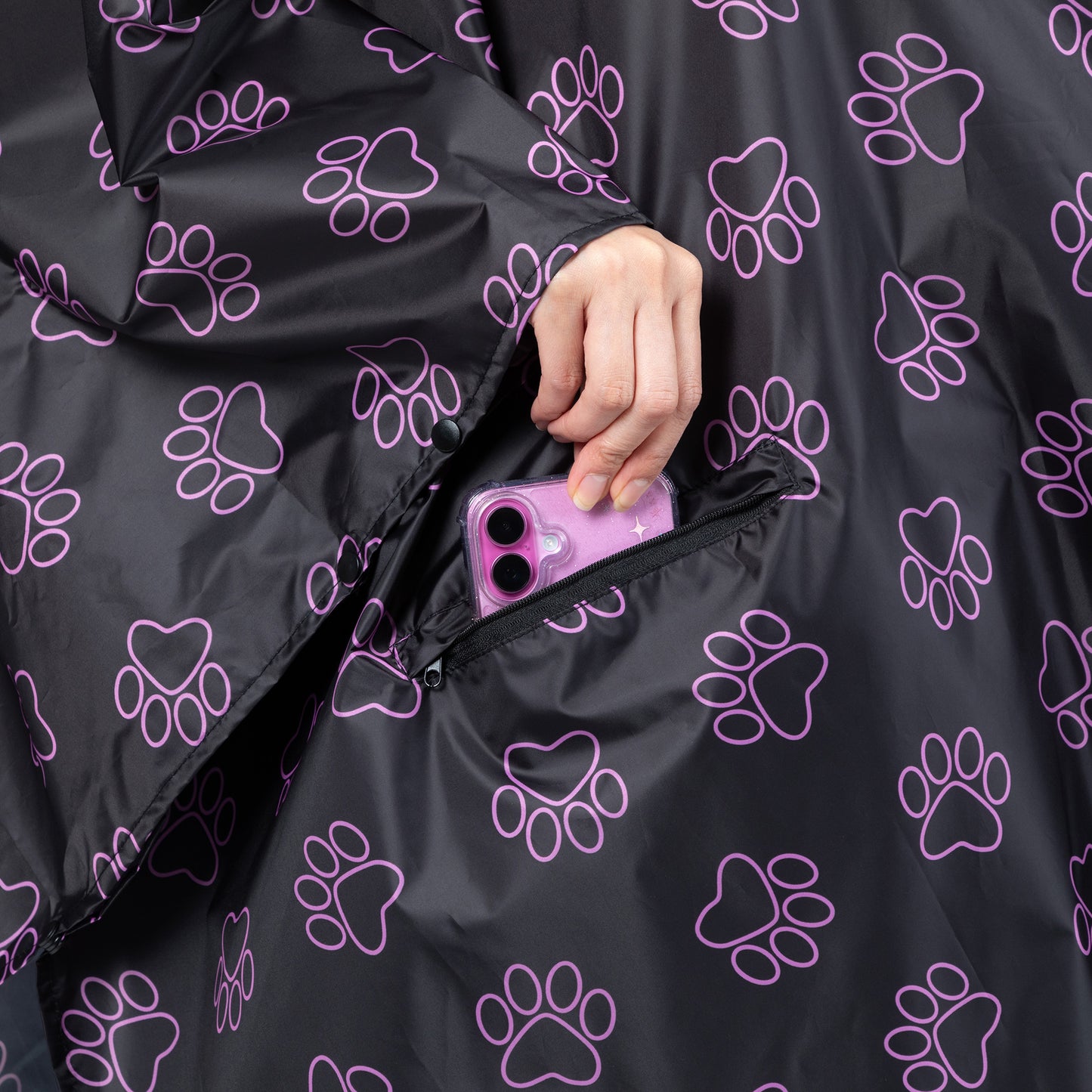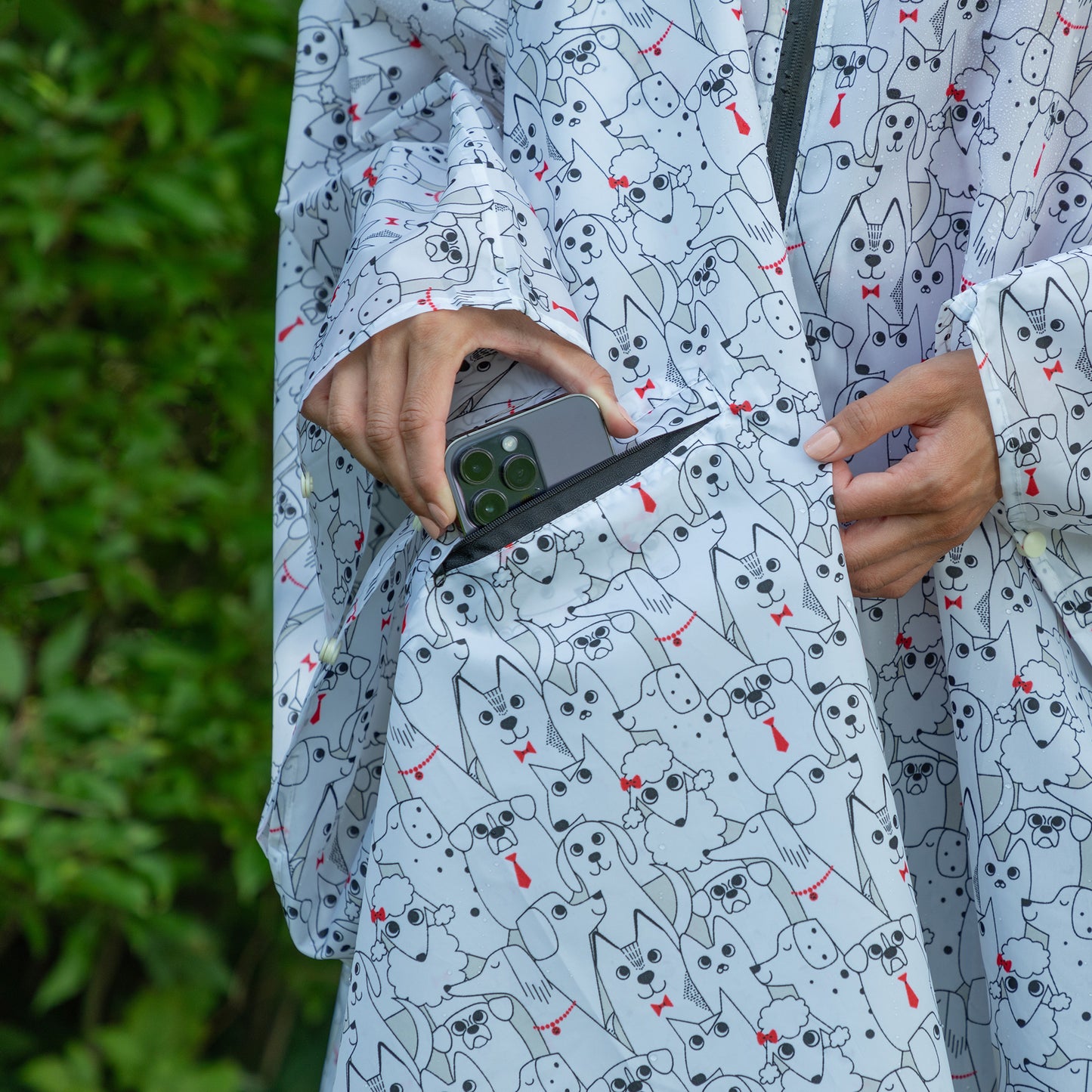 Never let a little rain ruin your plans! With this brilliantly compact rain poncho at the ready -- it fits into a compact pouch -- you stay dry with a simple zip up design. Topped with a toggled hood, exterior pocket for your phone or other belongings, and simple snaps to create sleeves at your preferred size! Leave unsnapped for an open, classic poncho silhouette.
