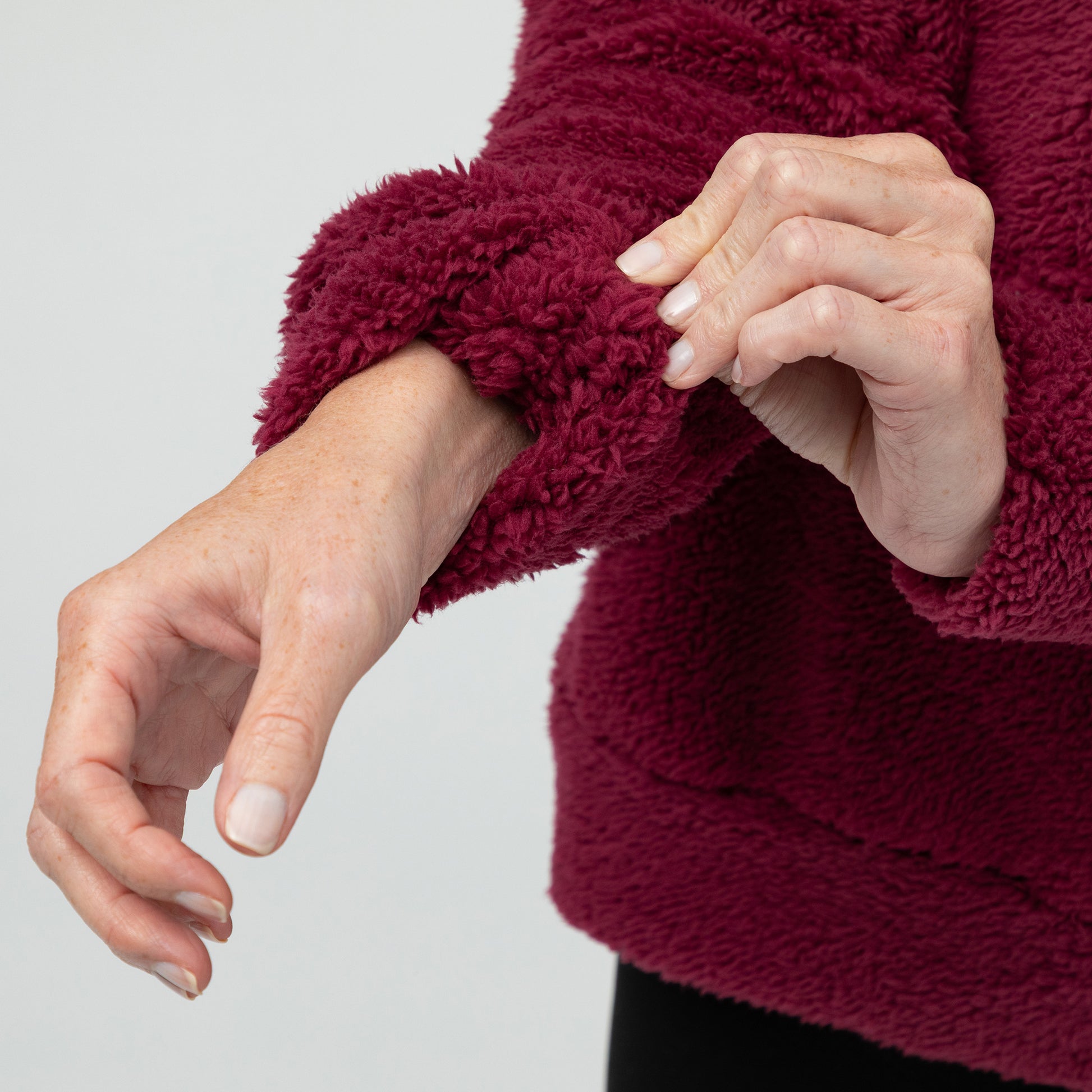 When cooler weather hits, you need your favorite go-to hoodie! Made with a textured sherpa fleece and a pair of embroidered purple paws on the chest, this 1/4 zip fleece pullover wraps you in warmth, comfort, and animal advocacy.