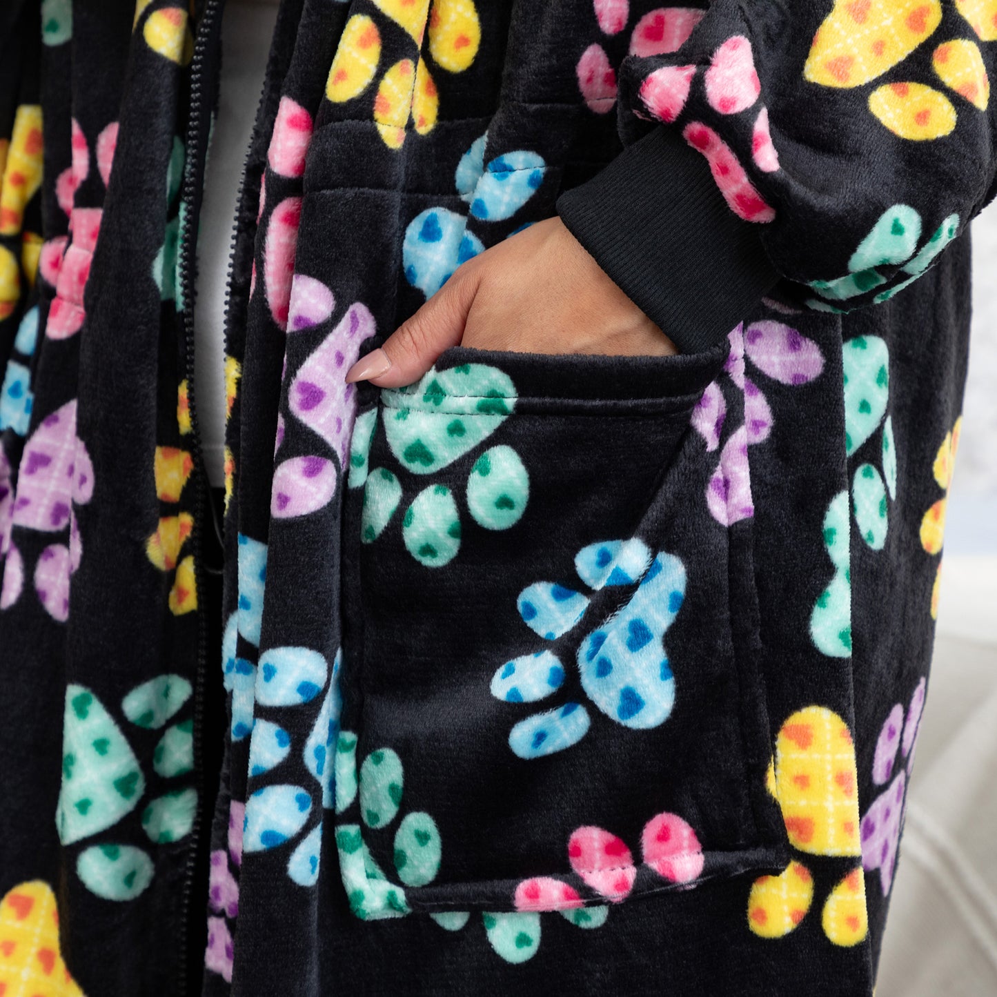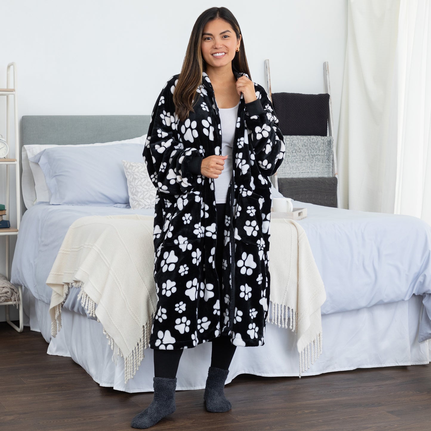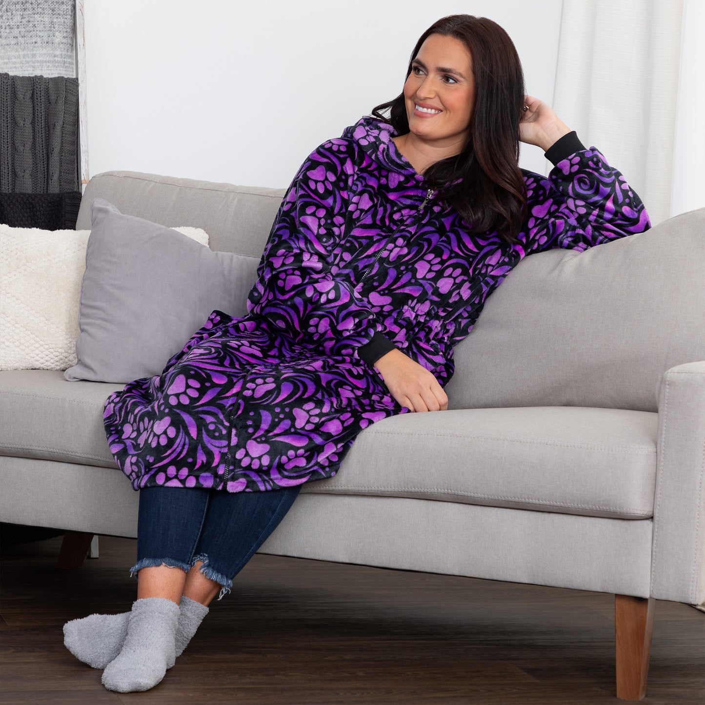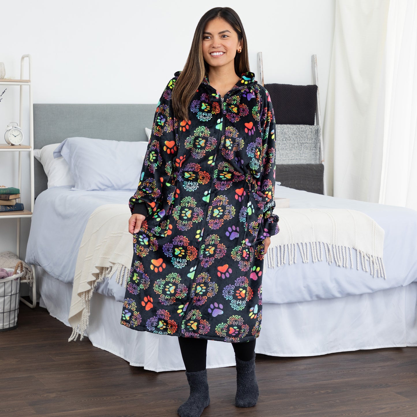 Super Cozy™ Paw Print Full Zip Blanket Hoodie with Waist Toggle