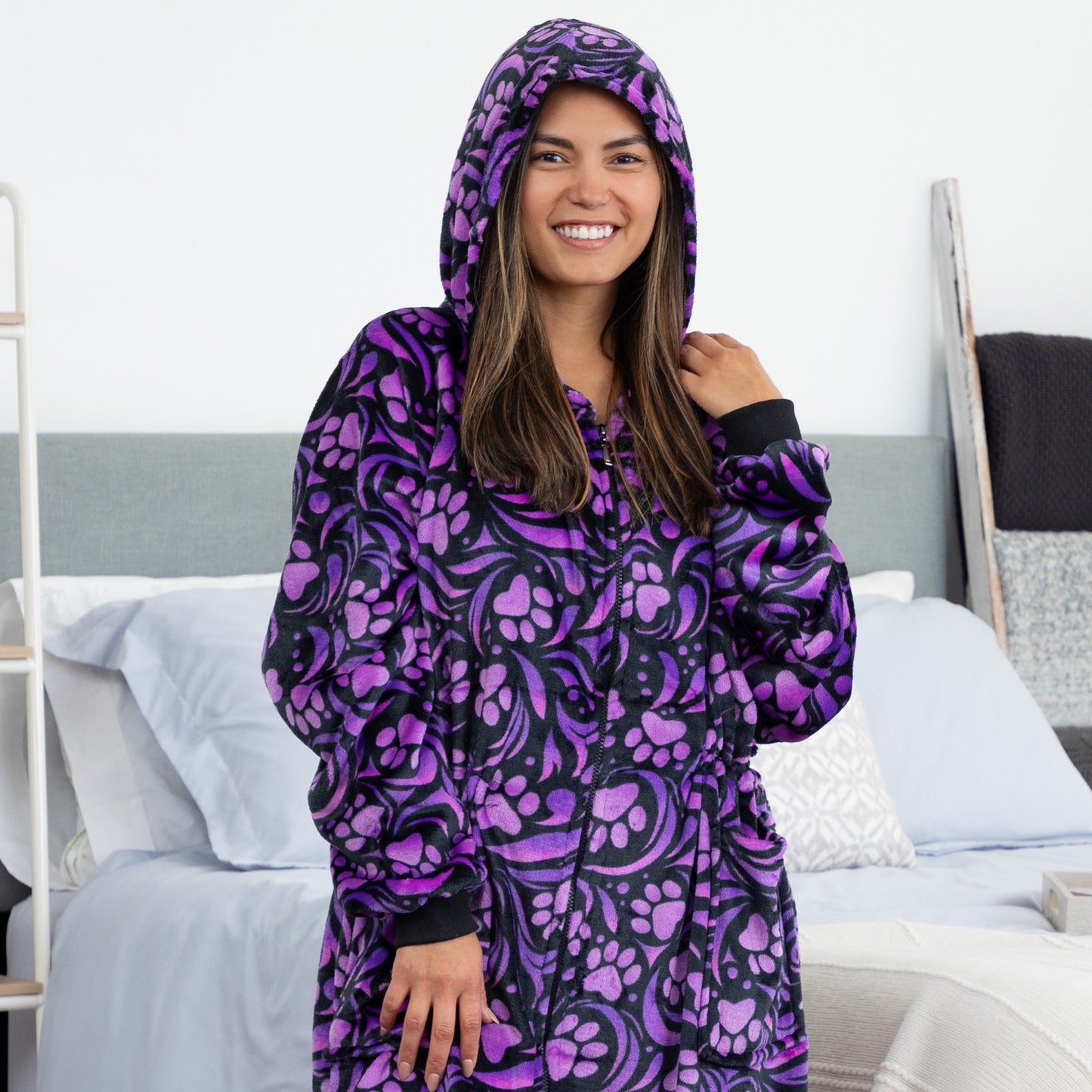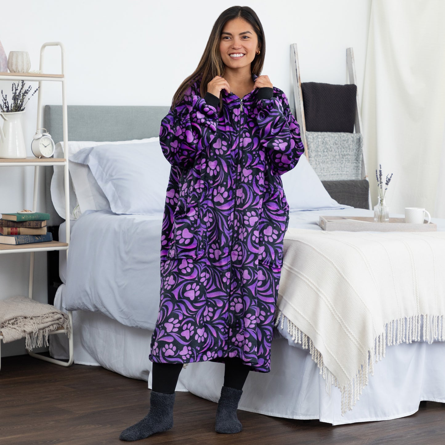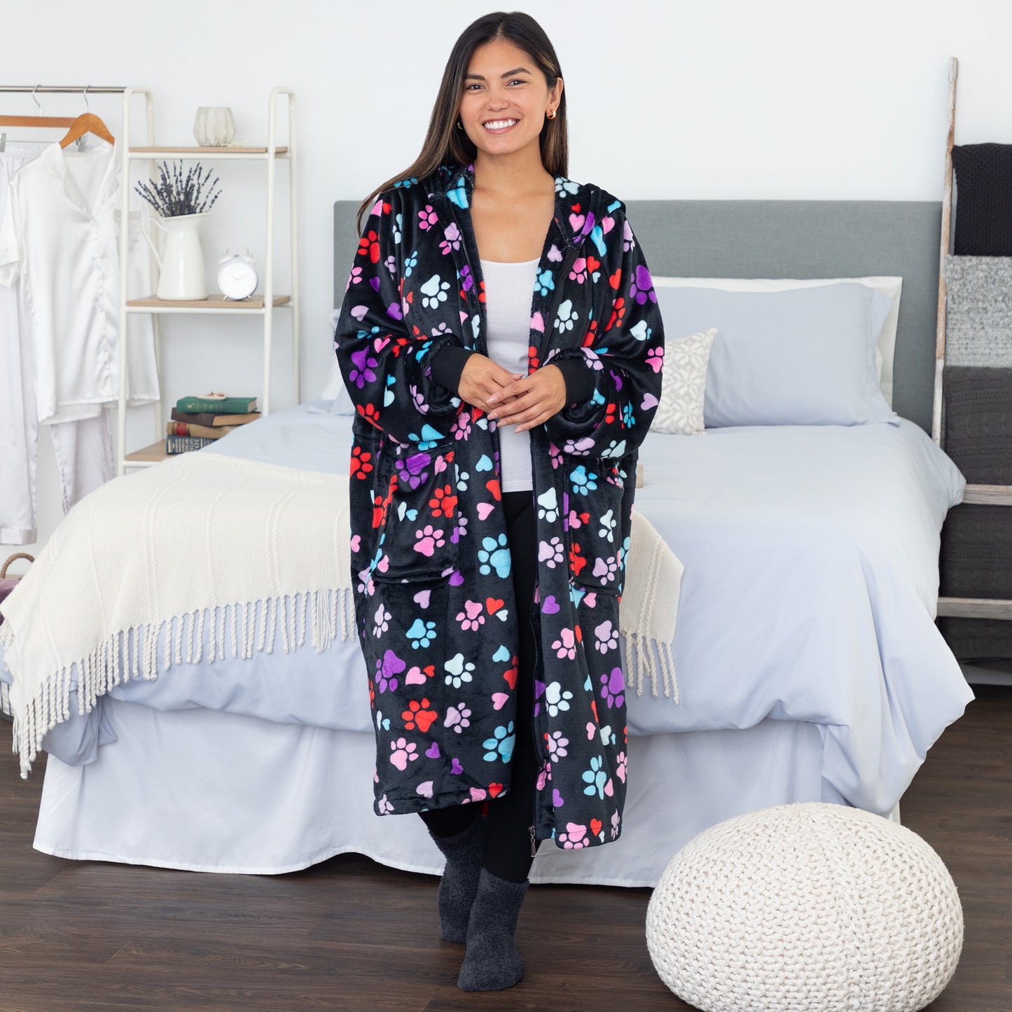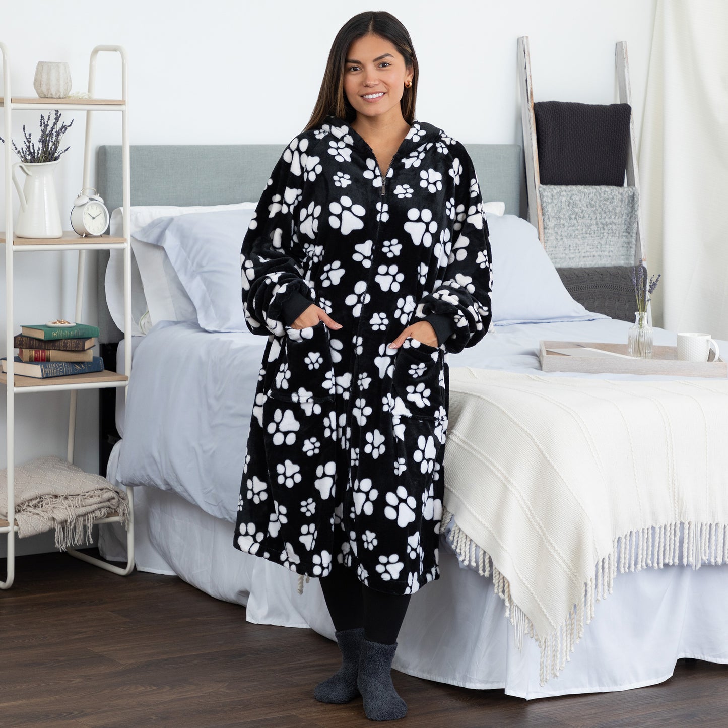 Super Cozy™ Paw Print Full Zip Blanket Hoodie with Waist Toggle