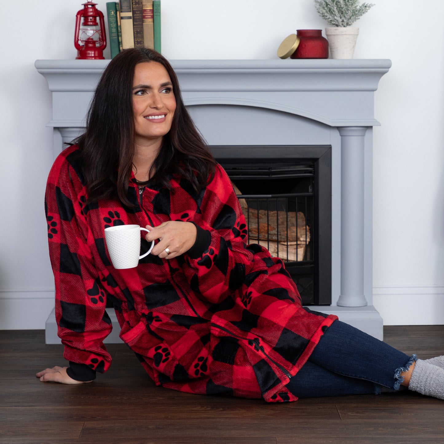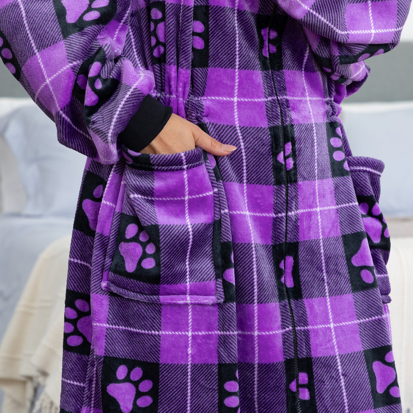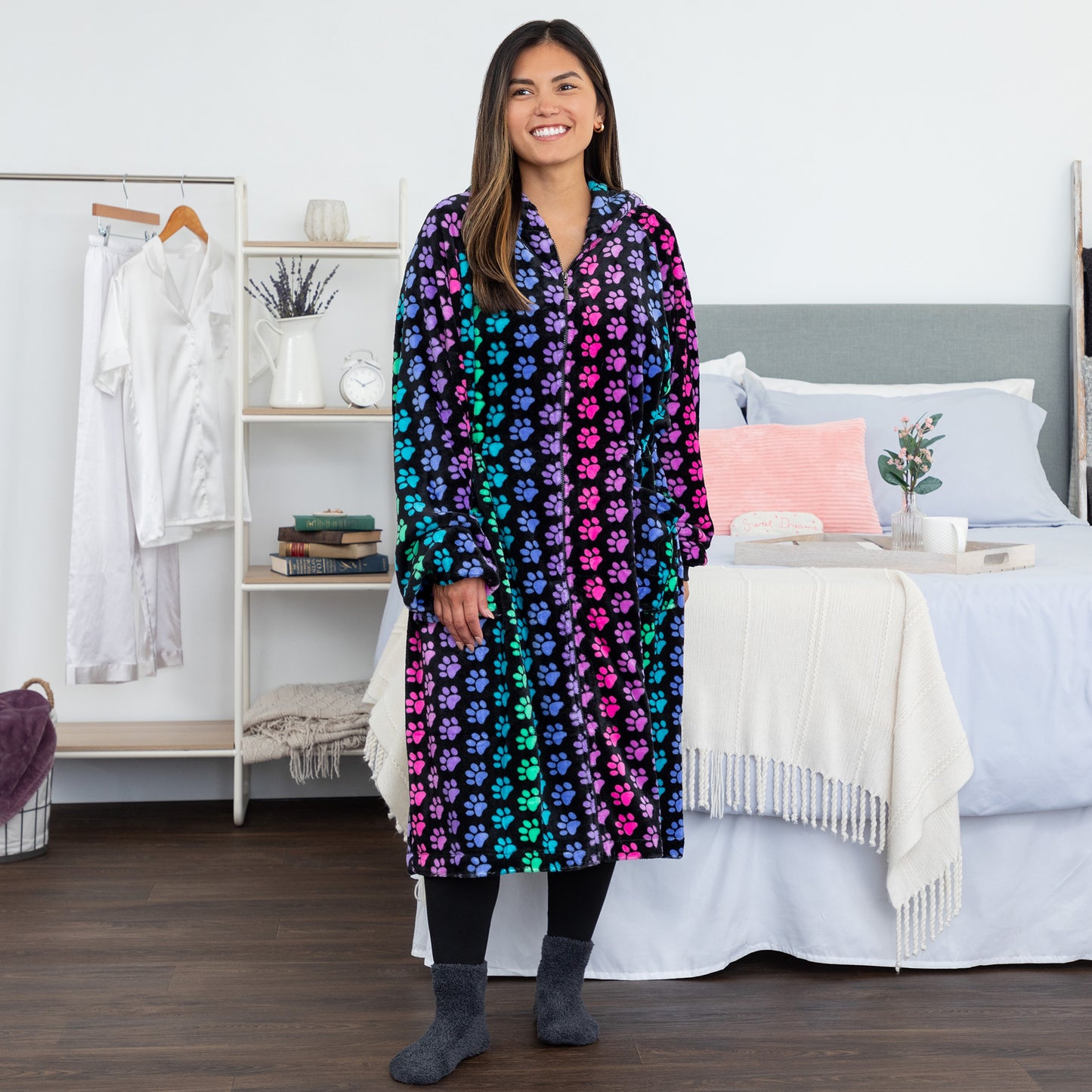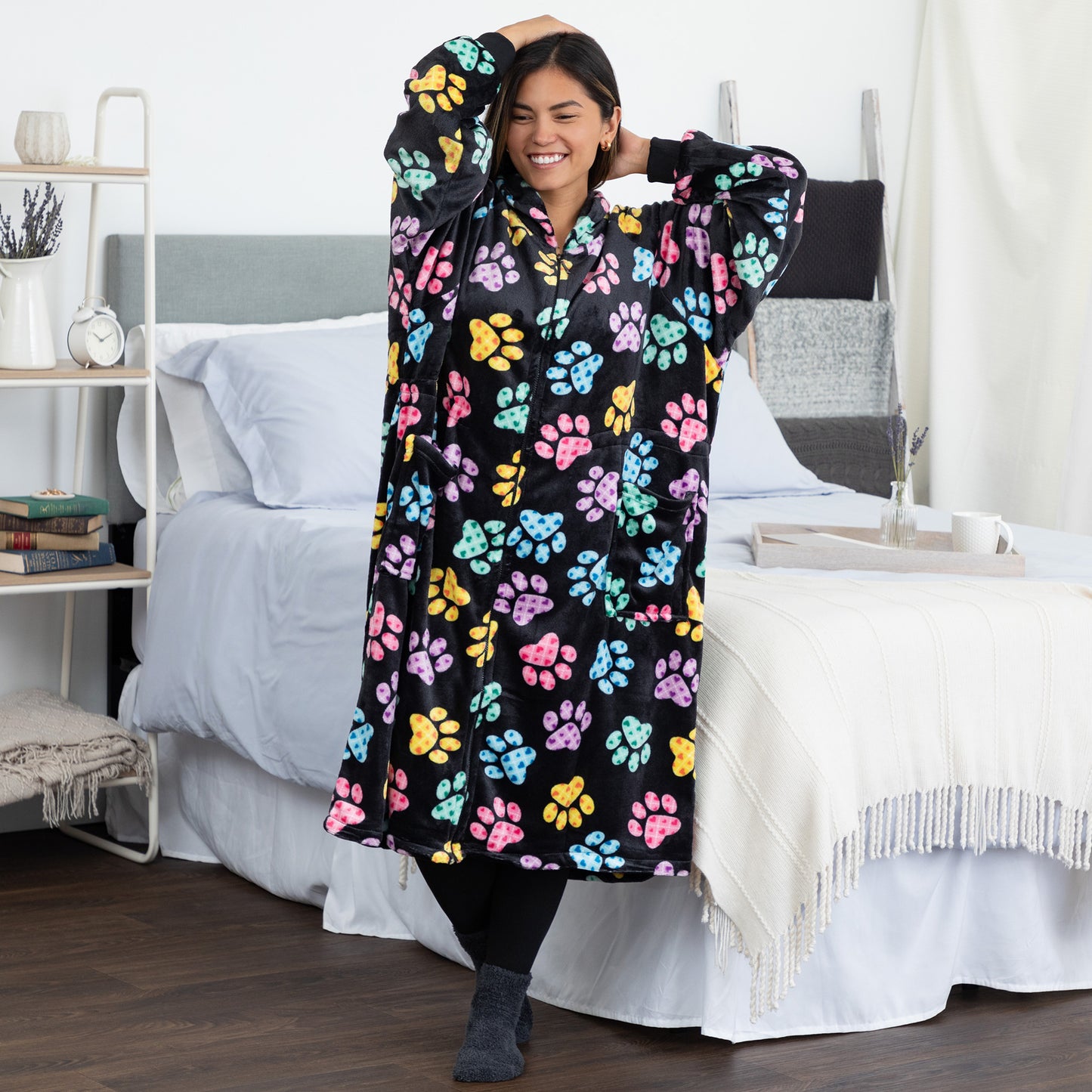 Super Cozy™ Paw Print Full Zip Blanket Hoodie with Waist Toggle