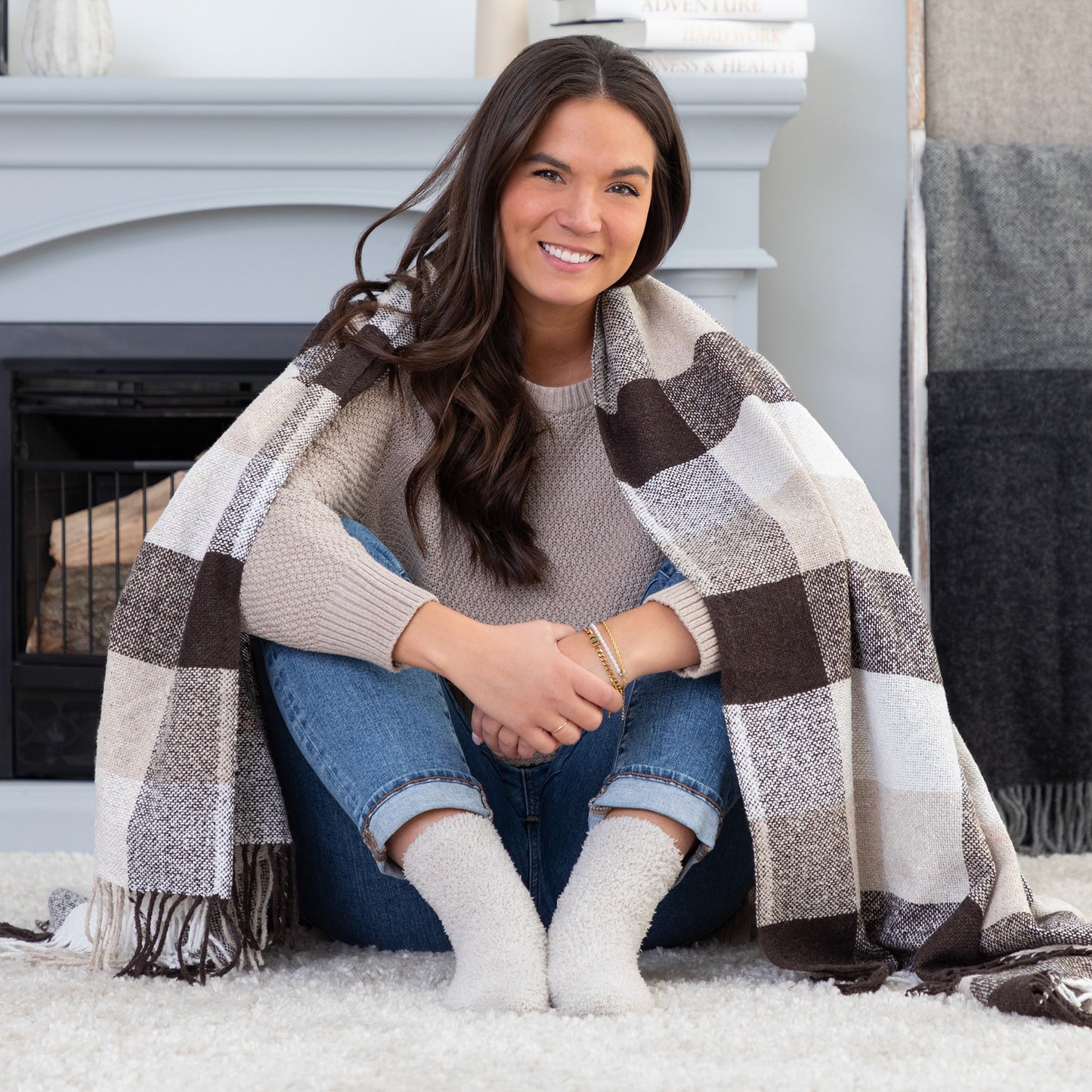 A beautiful wool blend that provides comfort and warmth for everyday use, this fringed throw blanket is a timeless bit of functional decor in your home. Woven with an array of versatile colors in a classic plaid design with soft fringed edges that never go out of style.