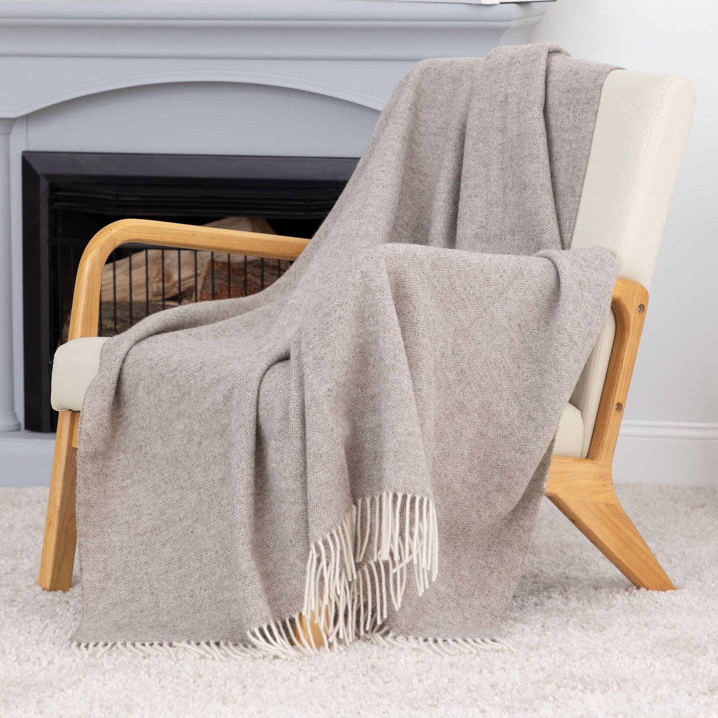 Being a highly efficient insulator and resistant to odors also gives this wool throw blanket the stamp of approval for everyday use. Plus, merino sheep grow a new layer of wool every year, making the harvesting and production of the soft yarn a sustainable practice. Woven with an array of versatile colors in a classic plaid or herringbone design with soft fringe along the edges that never goes out of style.