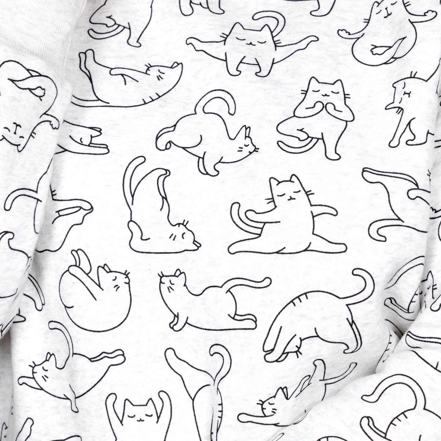 Comfortable and supremely cute, this cat-centric heathered gray crewneck pullover brings a smile to your face with every wear! Featuring an all-over pattern of felines in their favorite yoga poses on a comfortable cotton blend sweatshirt.