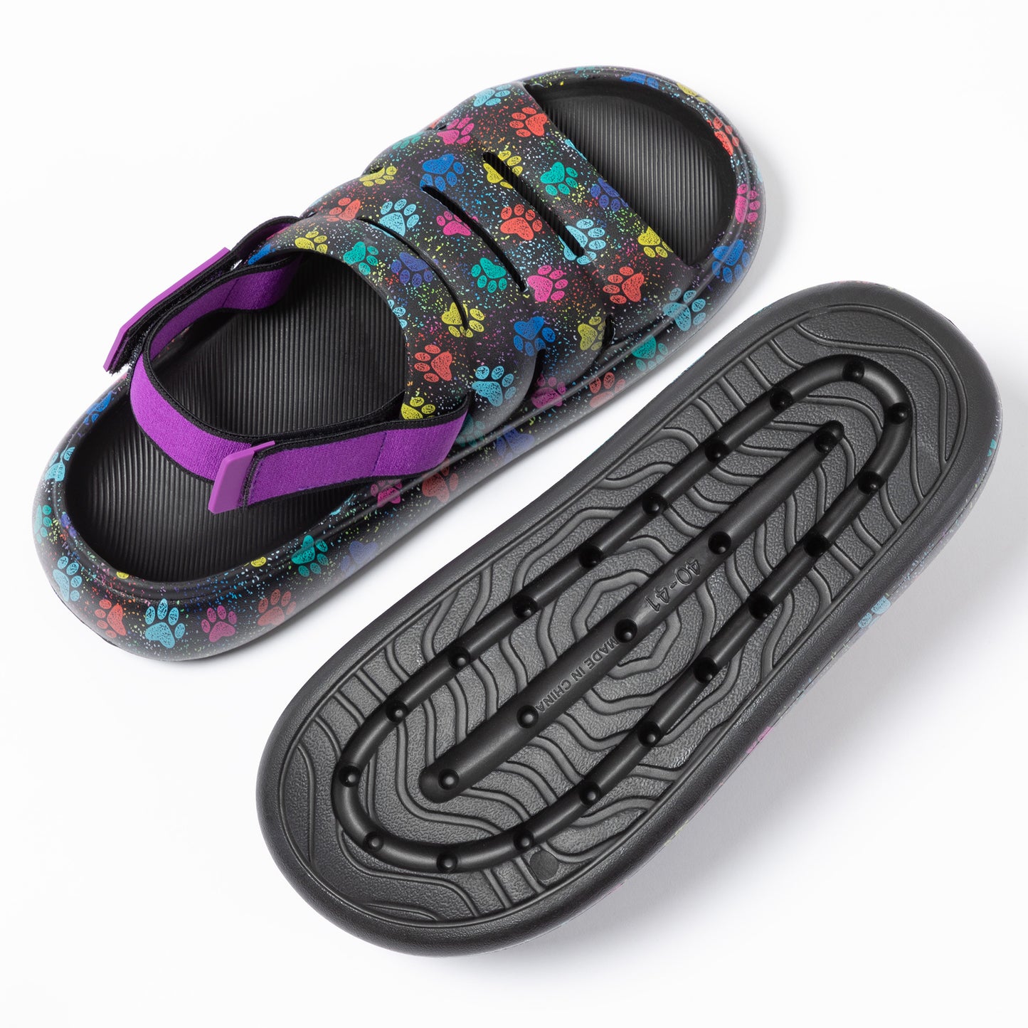 Slip into these versatile EVA sandals, designed for both style and functionality. With an adorable paw print pattern and ultra-lightweight construction, these sandals are perfect for any adventure. Their convertible slip-on design features an adjustable strap that easily transitions between slingback and slides, ensuring comfort and versatility wherever you go.