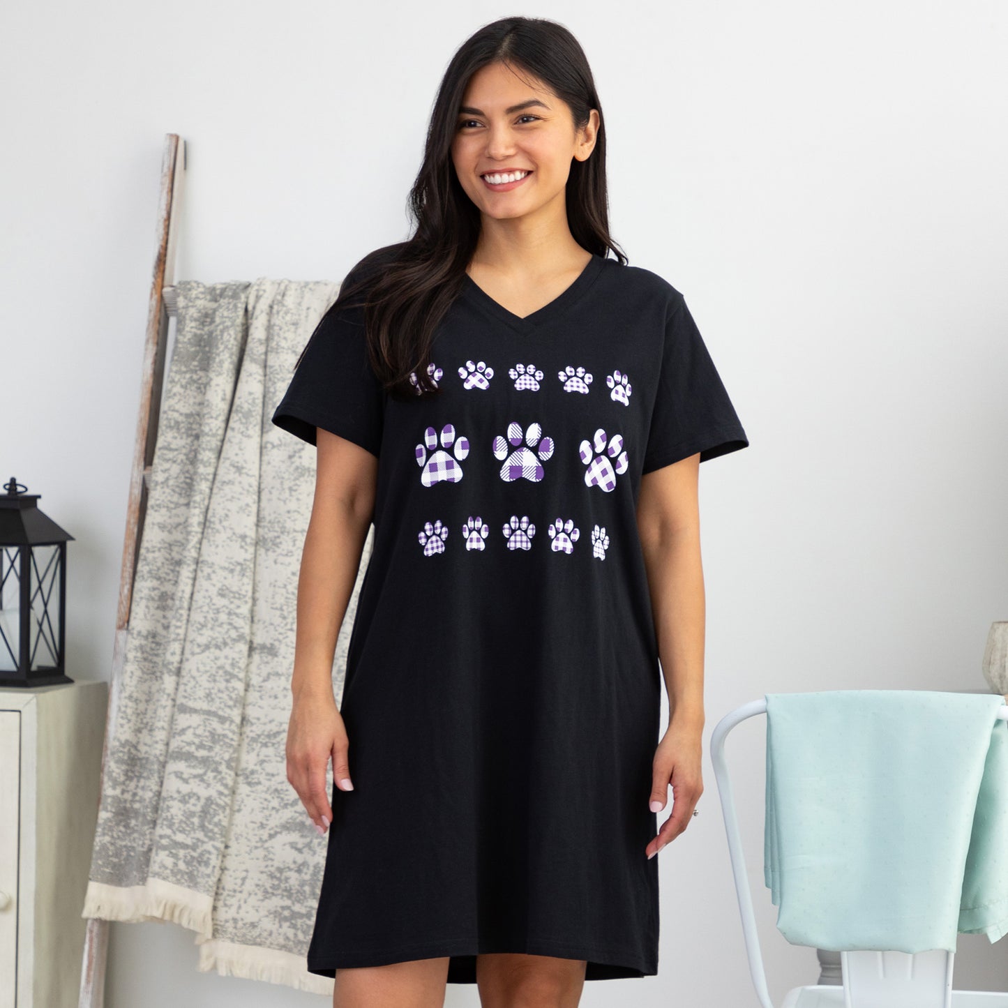 Embrace your playful side in comfort with this cute and comfortable nightgown. Made of 100% cotton, this short sleeve nightgown features a playful gingham paw print, adding animal advocacy to your bedtime routine.