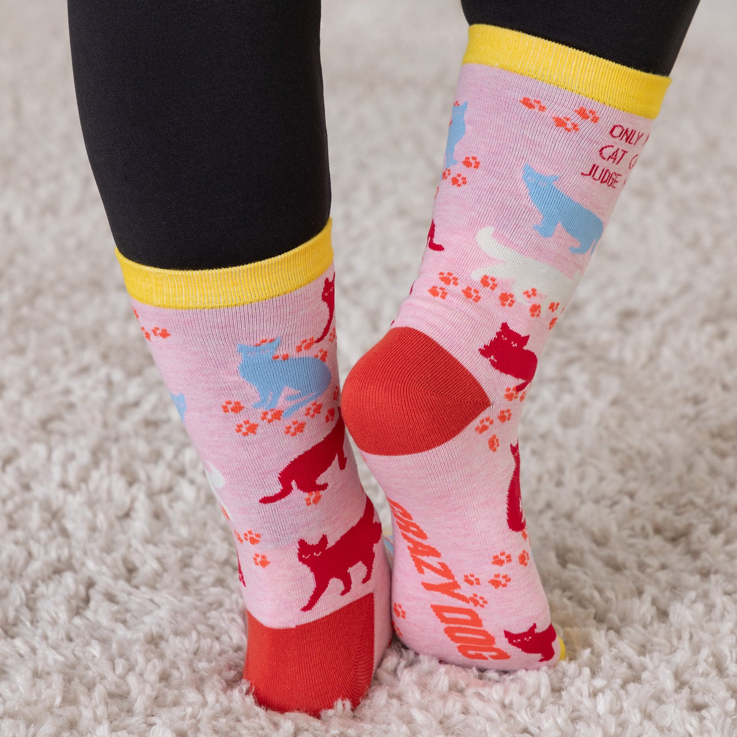 Colorful socks with cute sayings make your day that much brighter! Patterned in different cat and dog designs, each pair is made with a lightweight cotton blend that provides just the right fitted support for everyday wear.