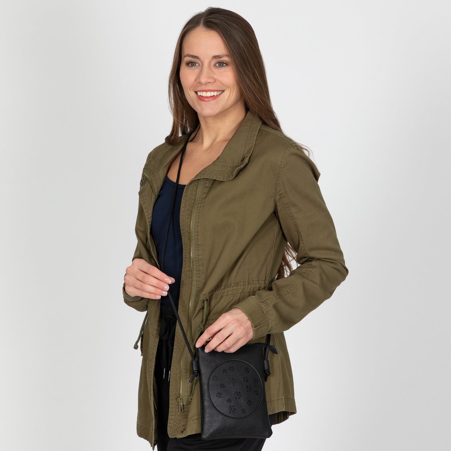 Unleash your inner style with our adorable faux leather crossbody purse adorned with tiny cutout paw prints. This delightful accessory seamlessly combines fashion and compassion, making it the ideal choice for animal lovers and trendsetters alike!