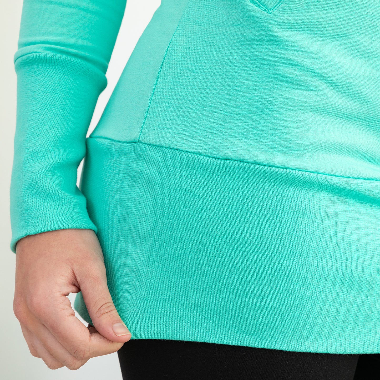 This extra long hoodie is made with soft french terry, the epitome of comfort and style. Elevate your casual wardrobe with this versatile and cozy hoodie that seamlessly combines fashion-forward design made with cotton and a touch of spandex for the perfect amount of stretch. Topped with a paw print and the phrase "Wild and Free - Love and Protect."